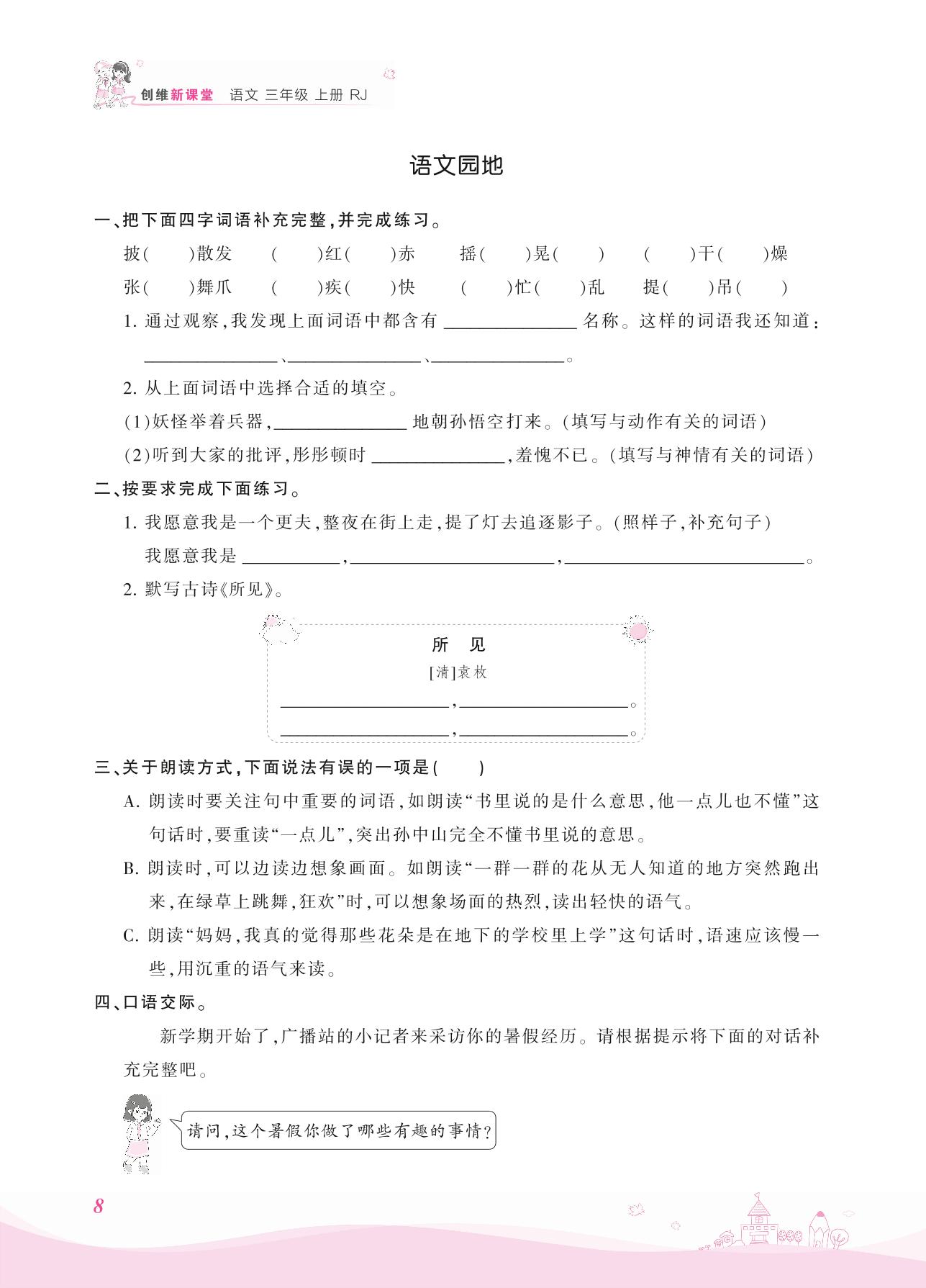 2021上册三年级语文人教版 第一单元——语文园地
