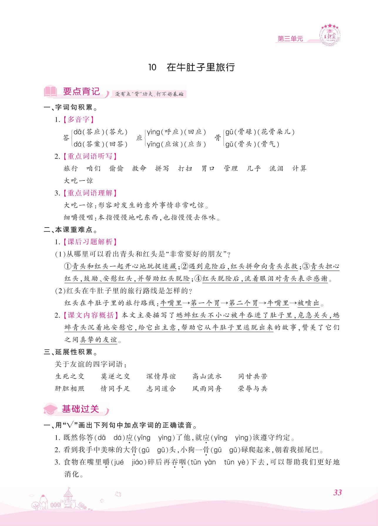 2021上册三年级语文人教版 第三单元——10 在牛肚子里旅行