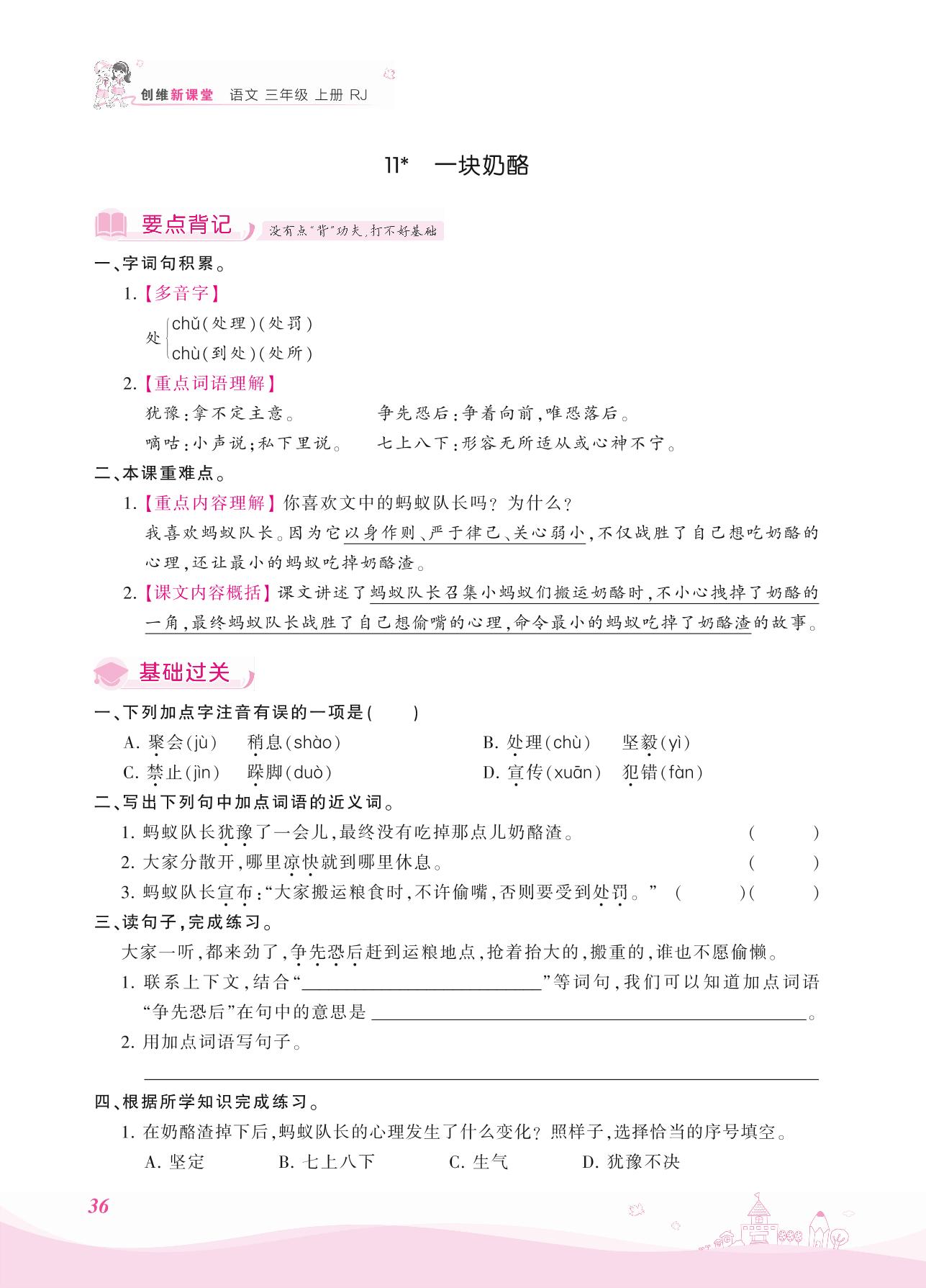 2021上册三年级语文人教版 第三单元——11 一块奶酪
