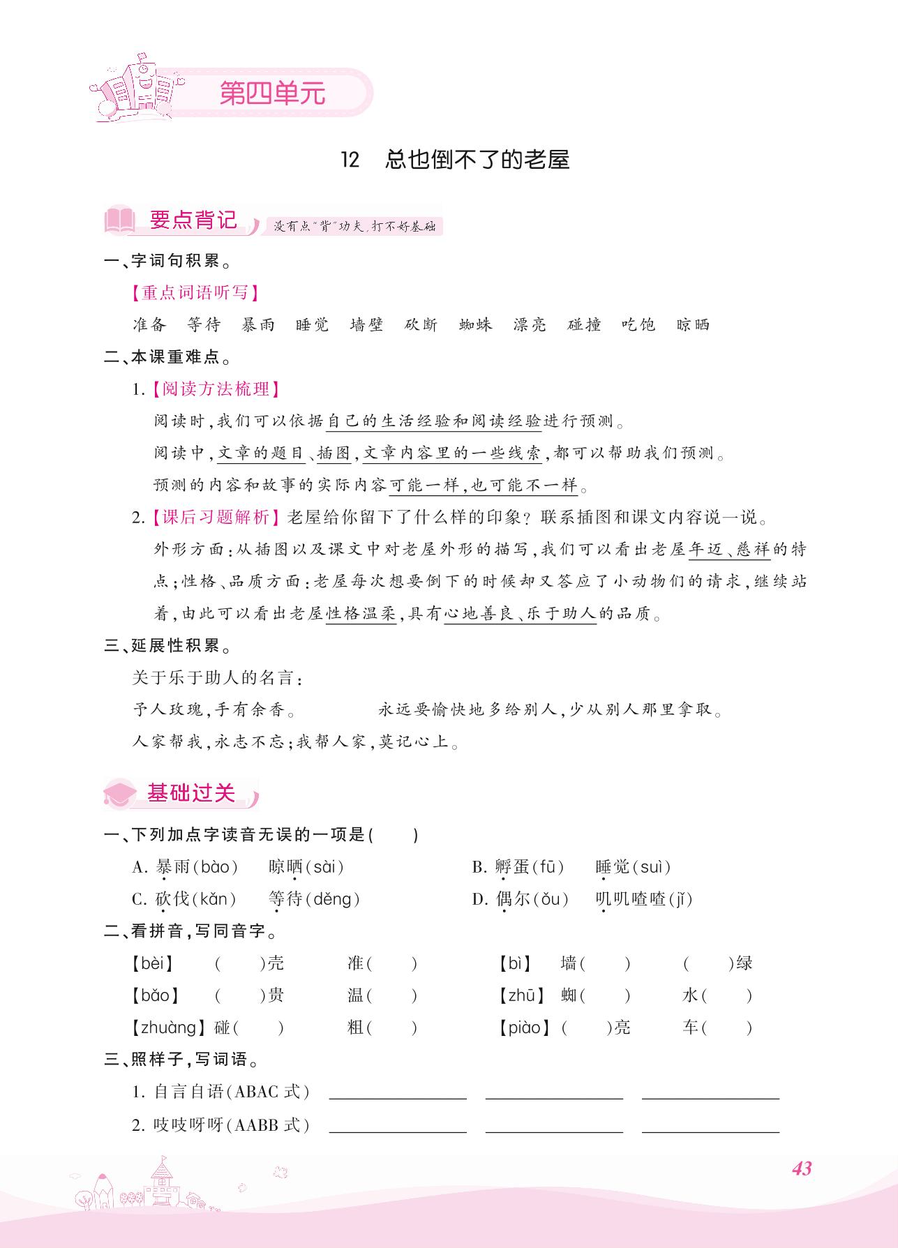 2021上册三年级语文人教版 第四单元——12 总也倒不了的老屋