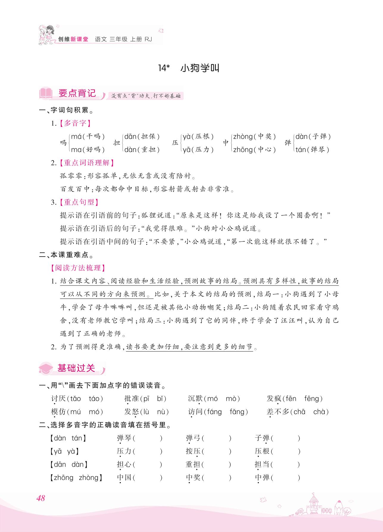 2021上册三年级语文人教版 第四单元——14 小狗学叫