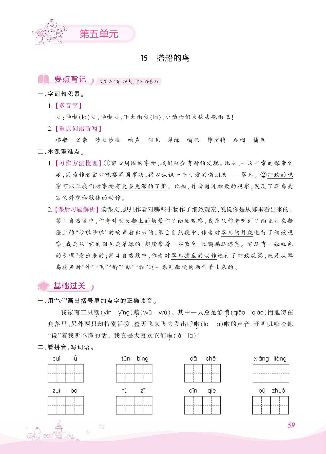 2021上册三年级语文人教版 第五单元——15 搭船的鸟