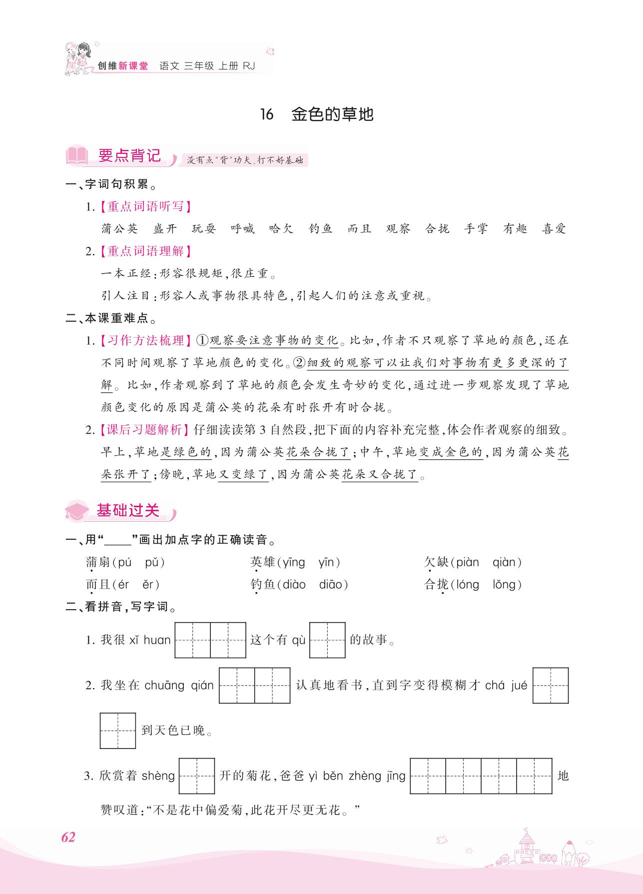 2021上册三年级语文人教版 第五单元——16 金色的草地