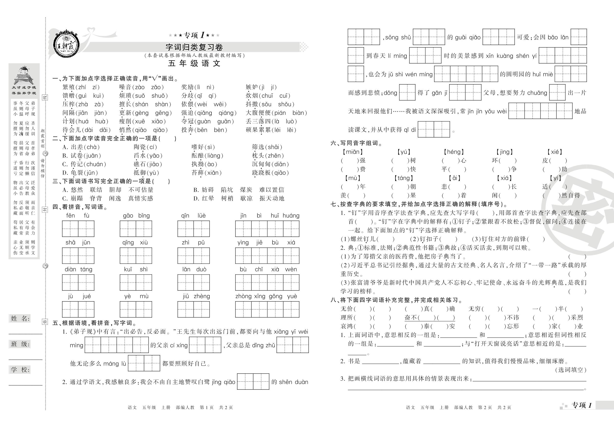 王朝霞期末专项卷——字词、句子与口语交际归类复习五年级上册语文(人教版)_R210801201128【0】