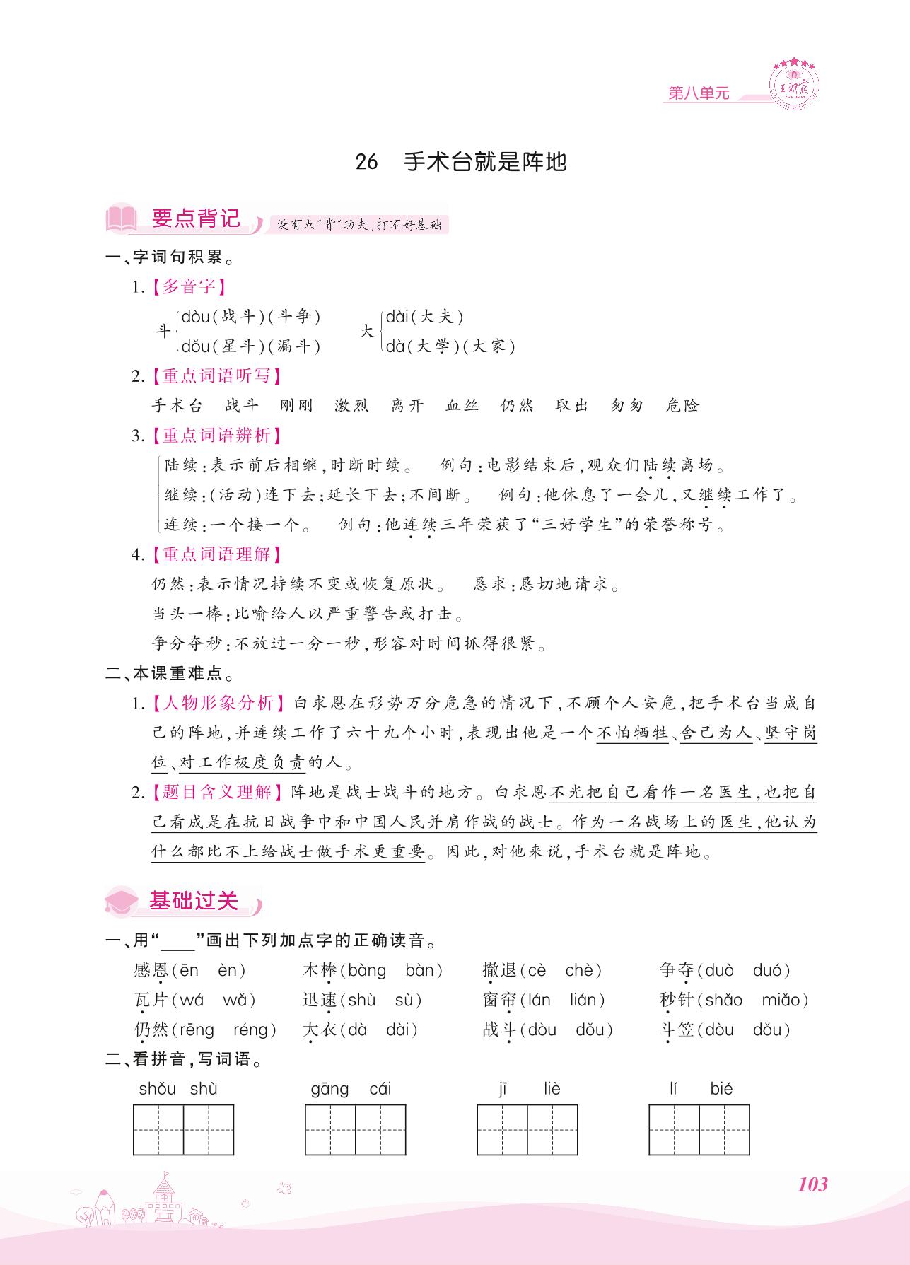 2021上册三年级语文人教版 第八单元——26 手术台就是阵地
