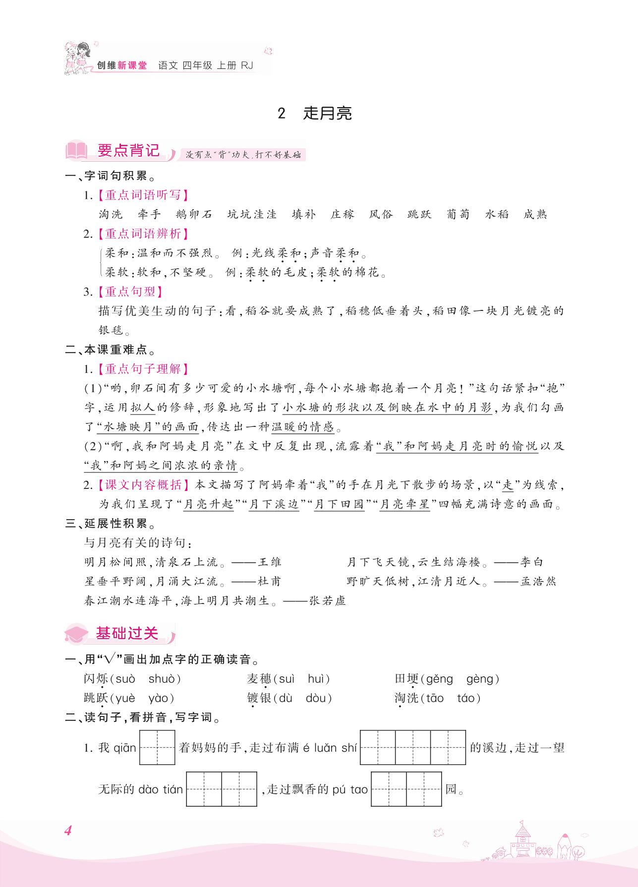 2021上册四年级语文人教版 第一单元——2 走月亮