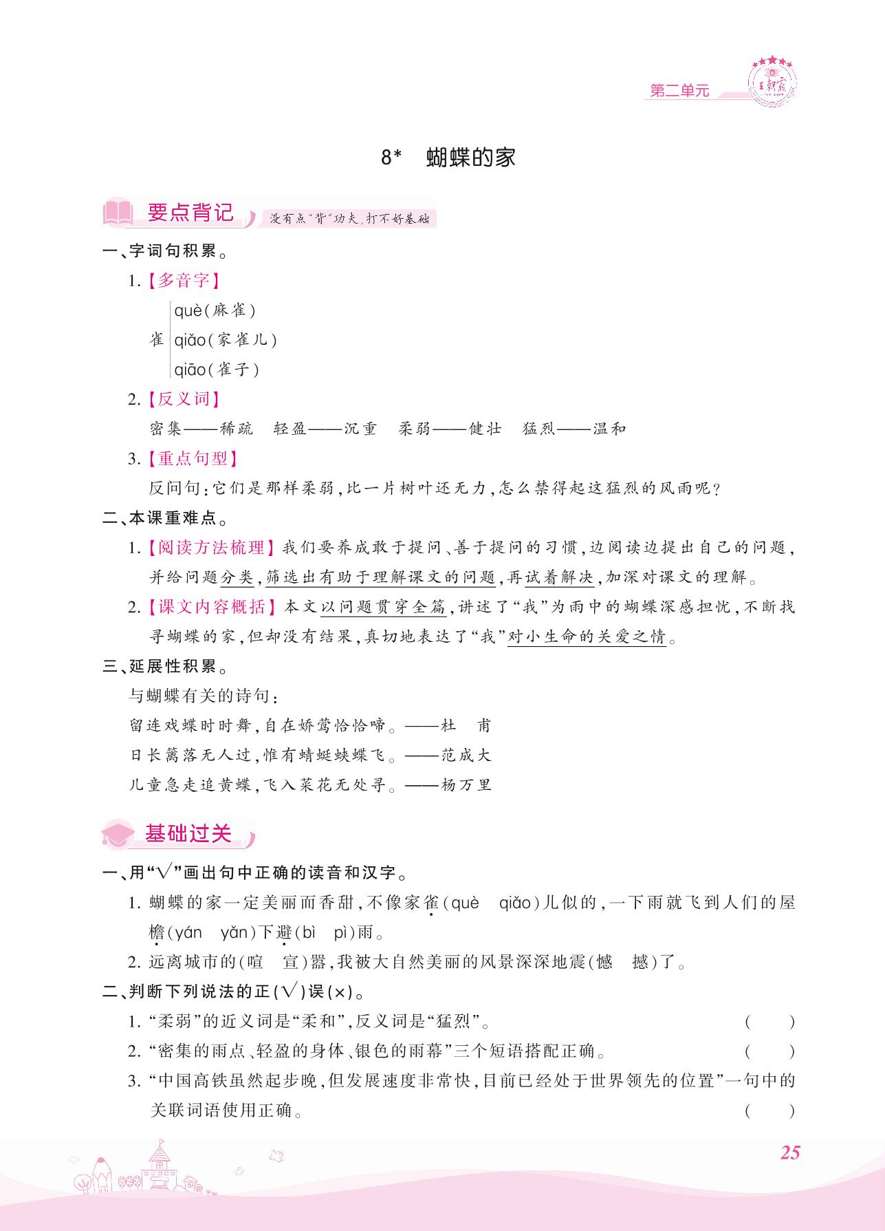 2021上册四年级语文人教版 第二单元——8 蝴蝶的家