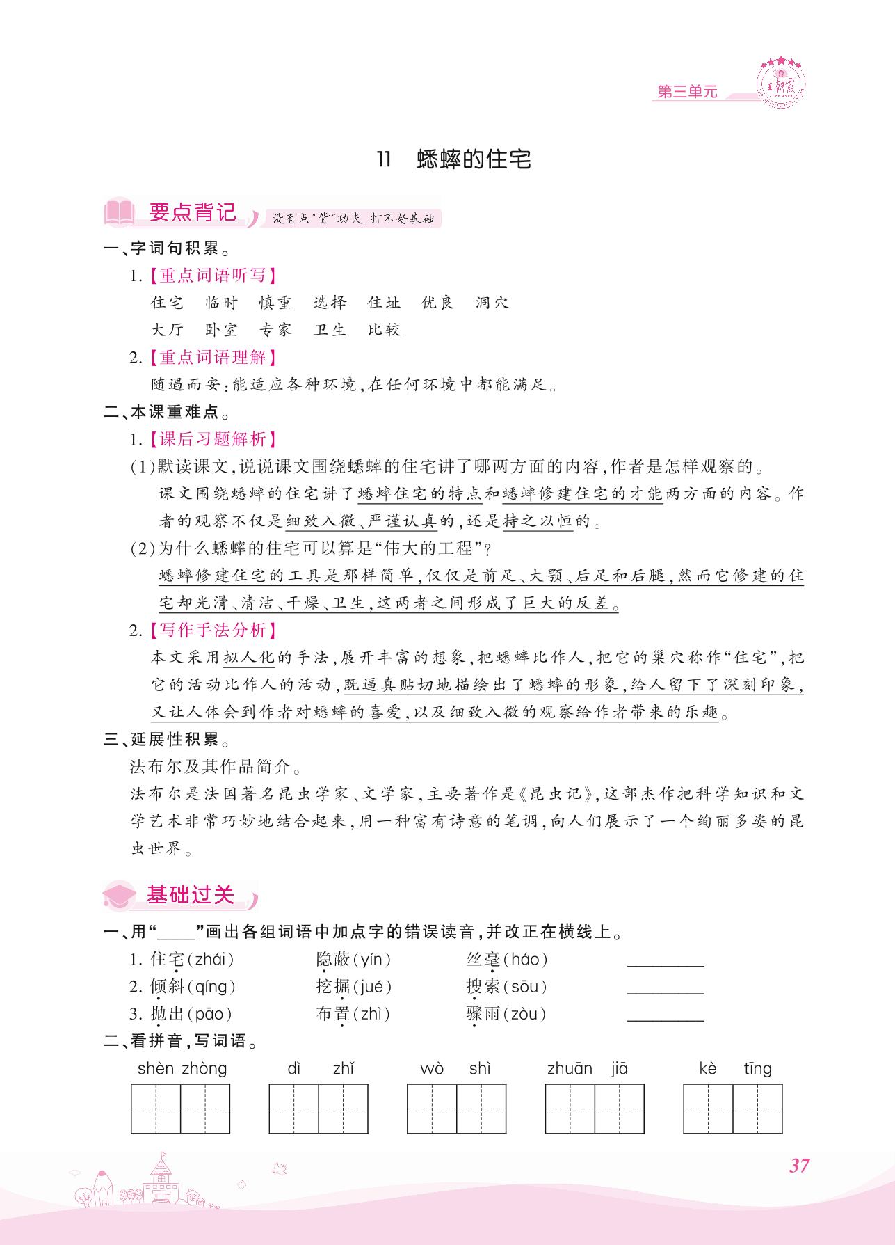 2021上册四年级语文人教版 第三单元——11 蟋蟀的住宅