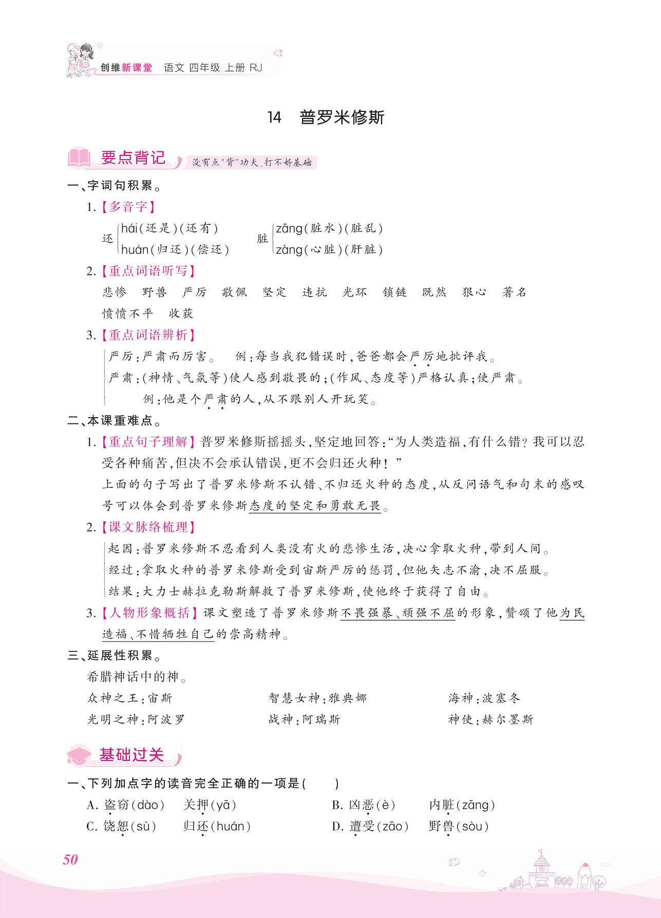 2021上册四年级语文人教版 第四单元——14 普罗米修斯