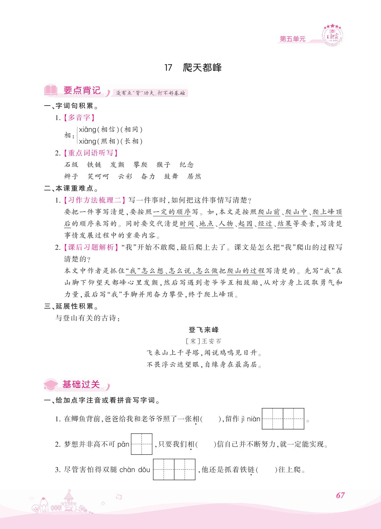 2021上册四年级语文人教版 第五单元——17 爬天都峰
