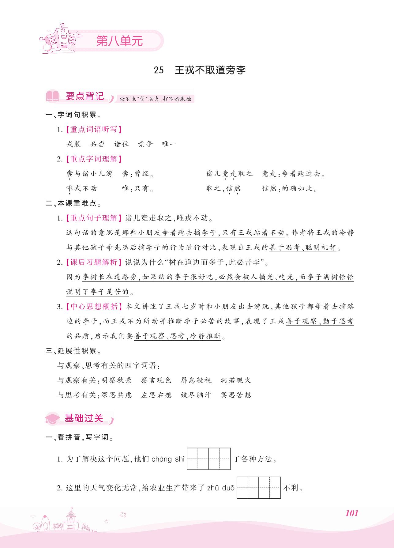 2021上册四年级语文人教版 第八单元——25 王戎不取道旁李
