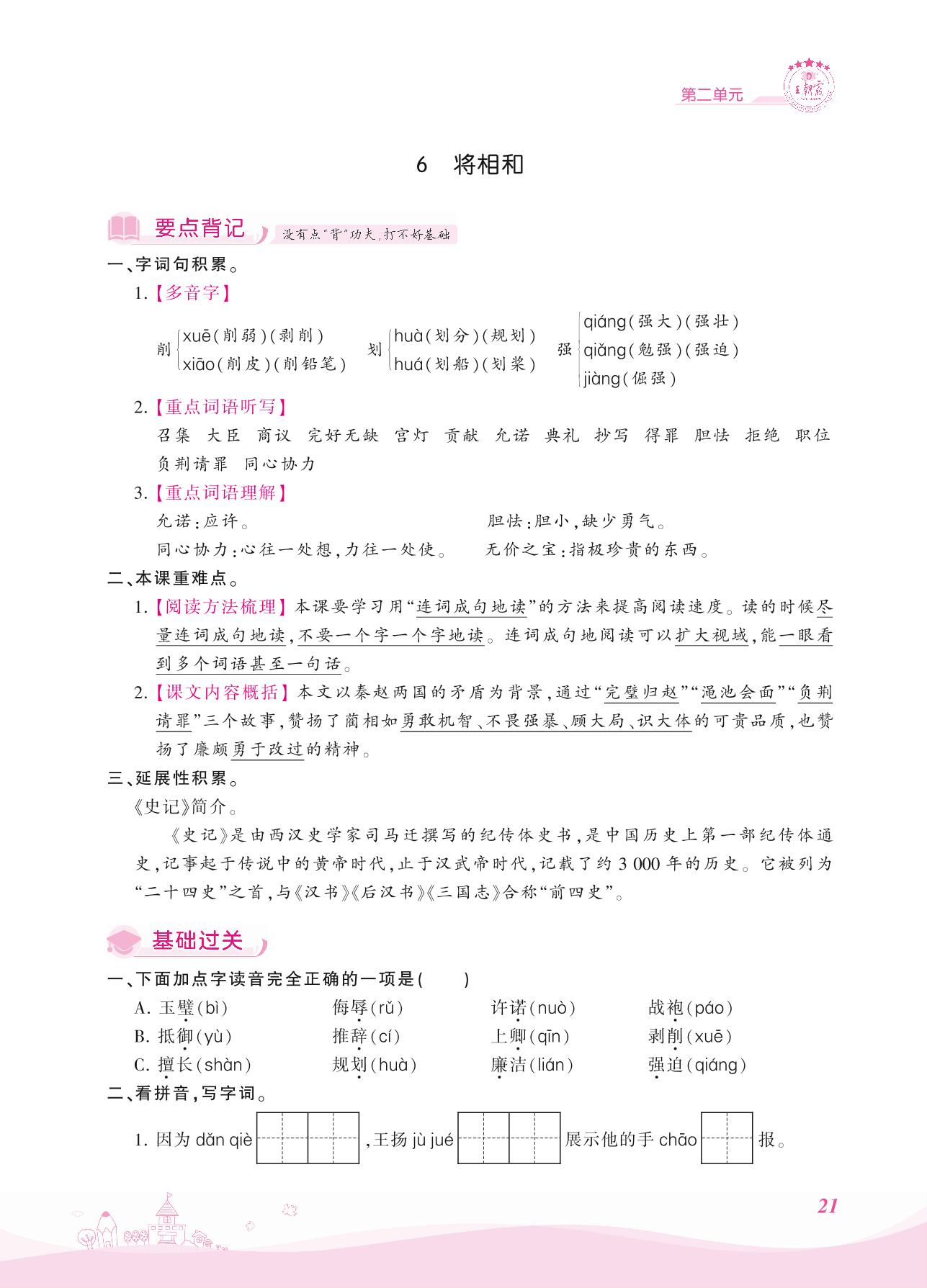 2021上册五年级语文人教版 第二单元——6 将相和