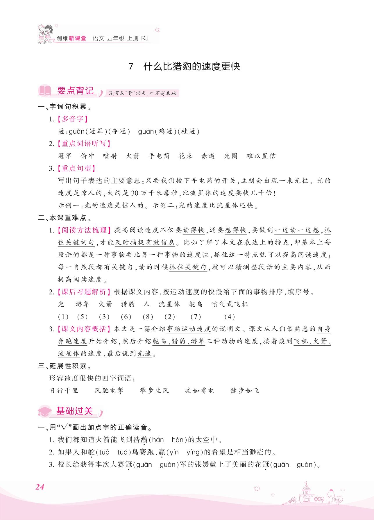 2021上册五年级语文人教版 第二单元——7 什么比猎豹的速度更快