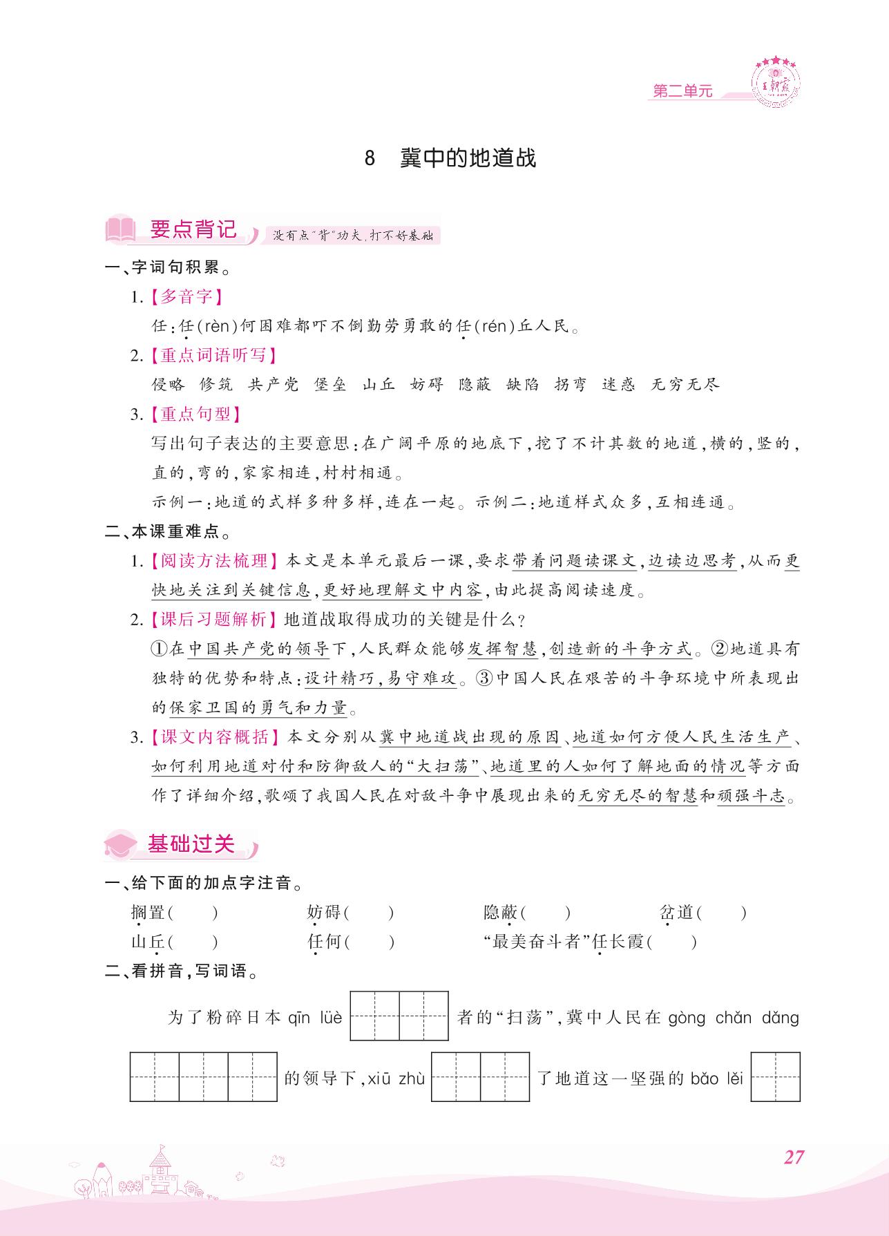 2021上册五年级语文人教版 第二单元——8 冀中的地道战