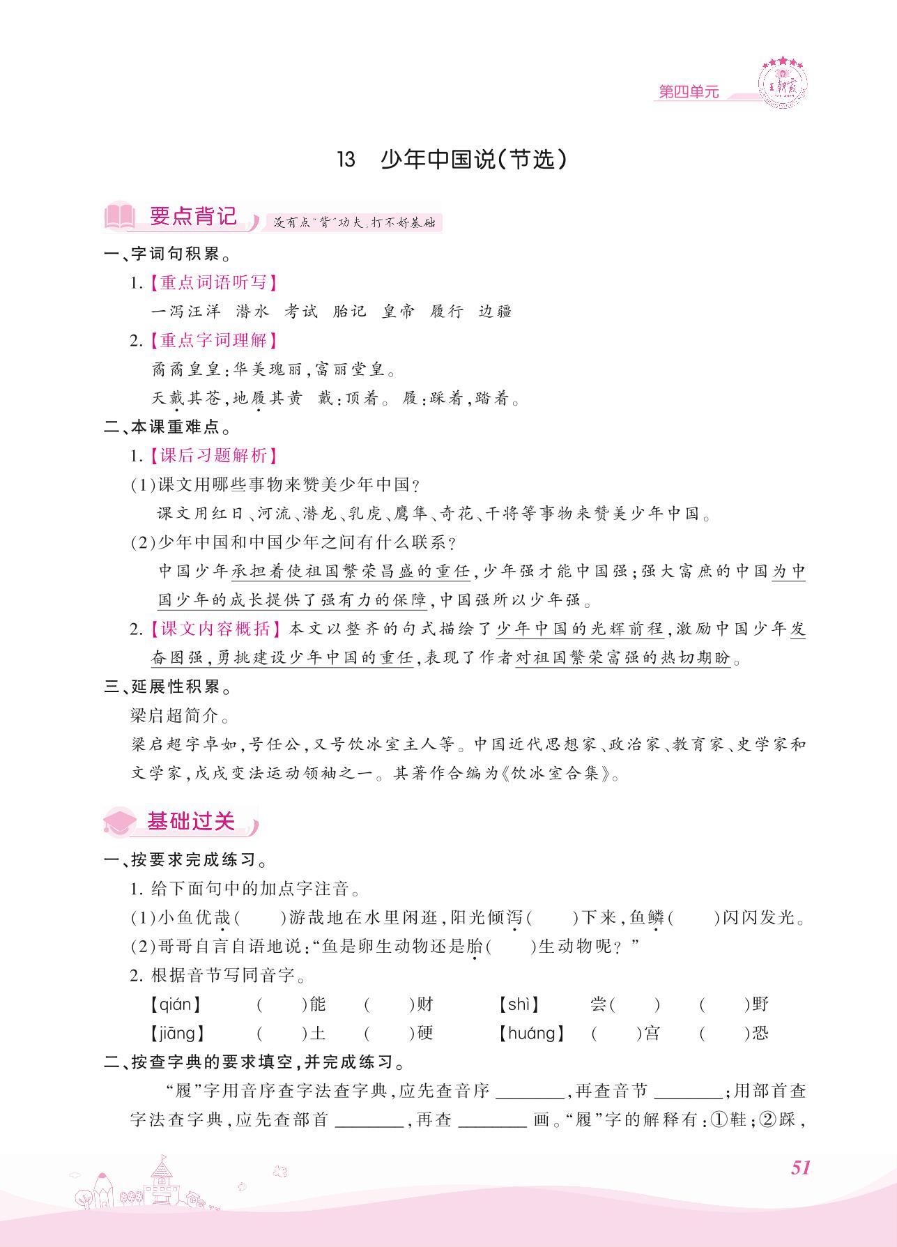 2021上册五年级语文人教版 第四单元——13 少年中国说(节选)