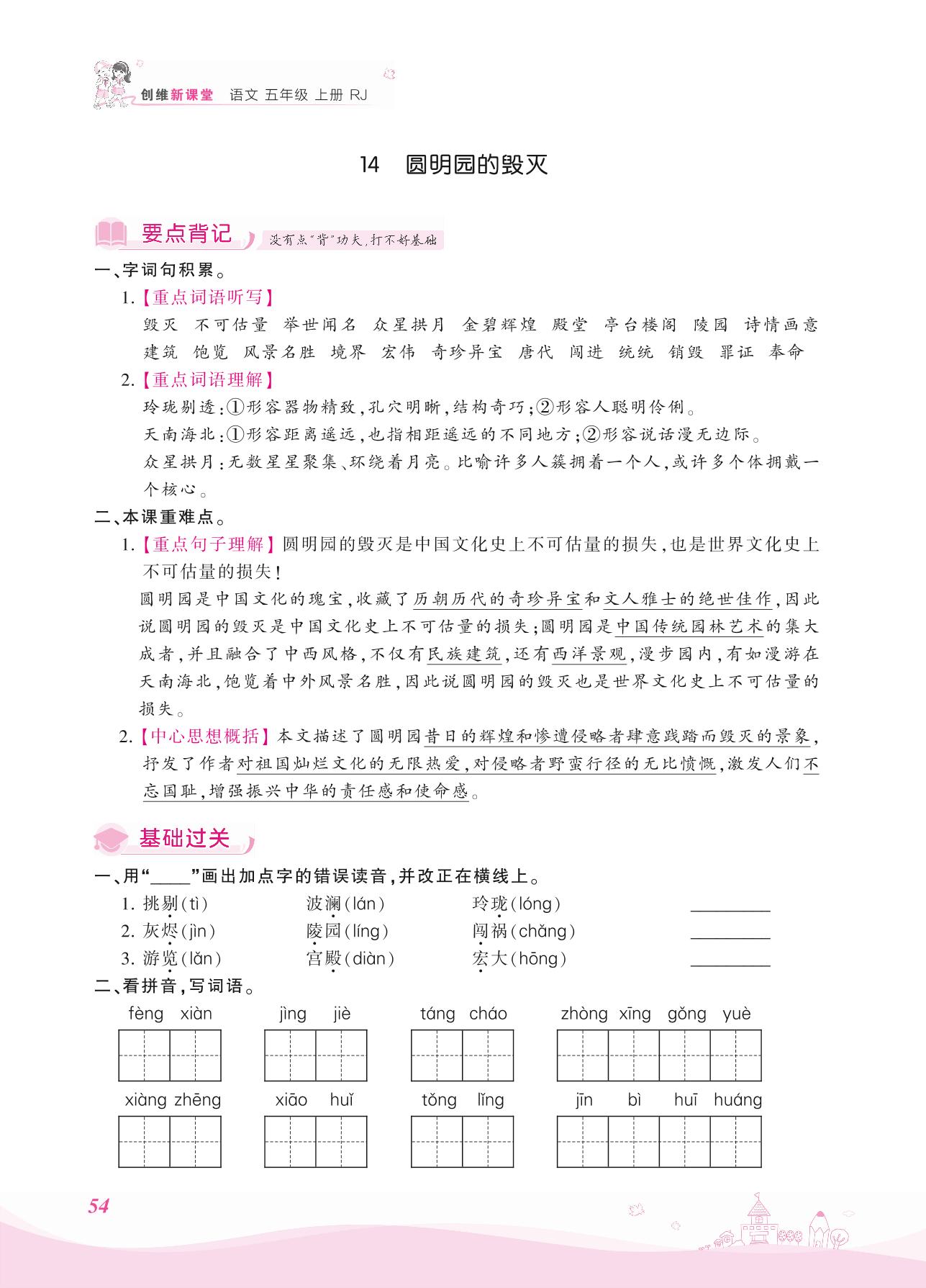 2021上册五年级语文人教版 第四单元——14 圆明园的毁灭