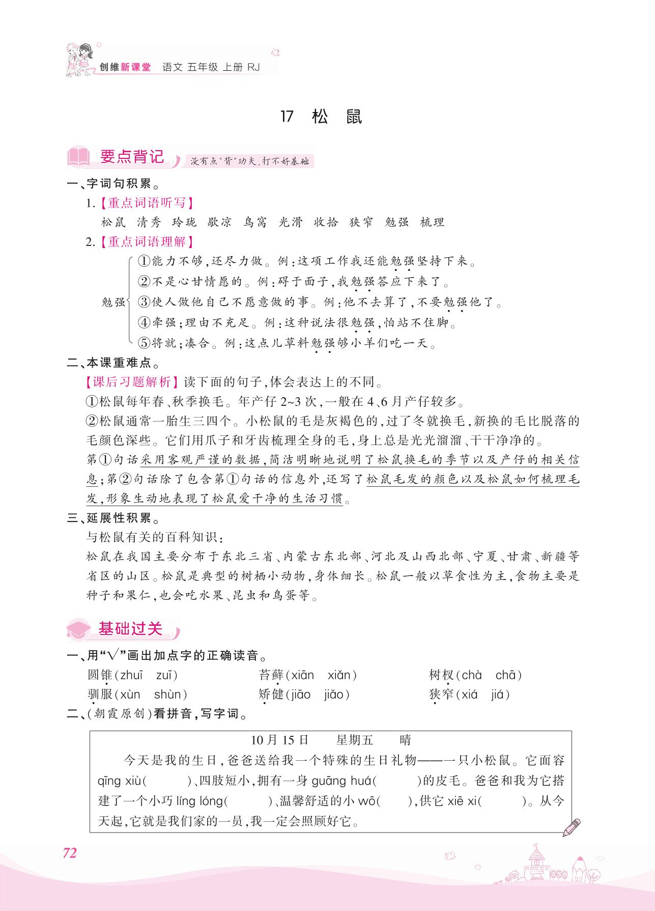 2021上册五年级语文人教版 第五单元——17 松鼠