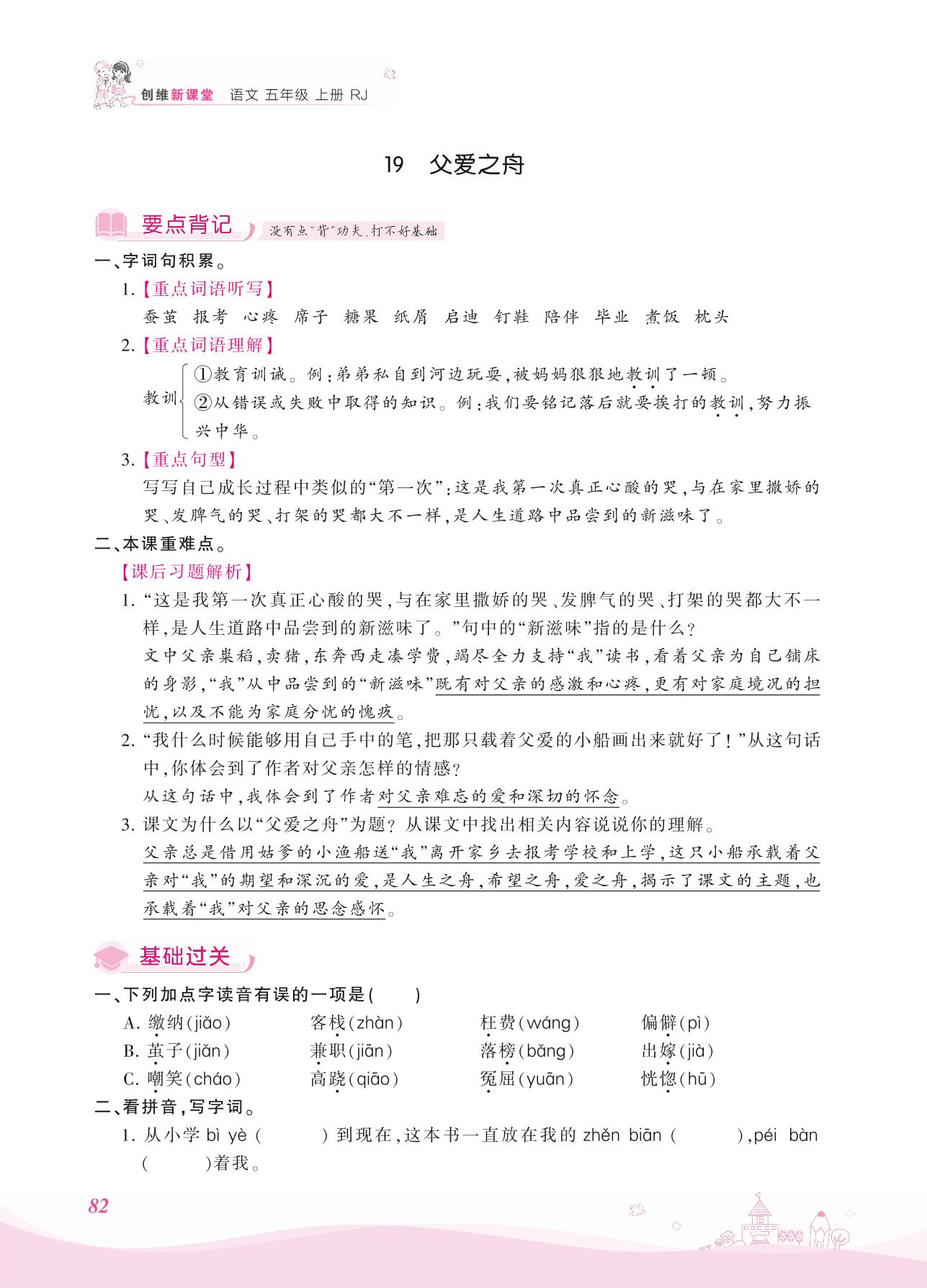2021上册五年级语文人教版 第六单元——19 父爱之舟