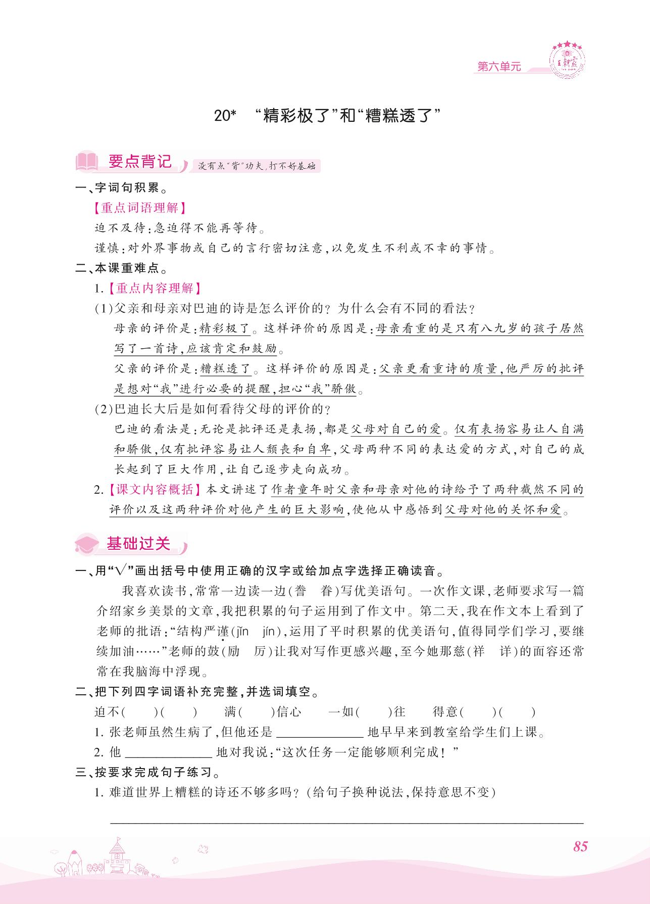 2021上册五年级语文人教版 第六单元——20 “精彩极了”和“糟糕透了”