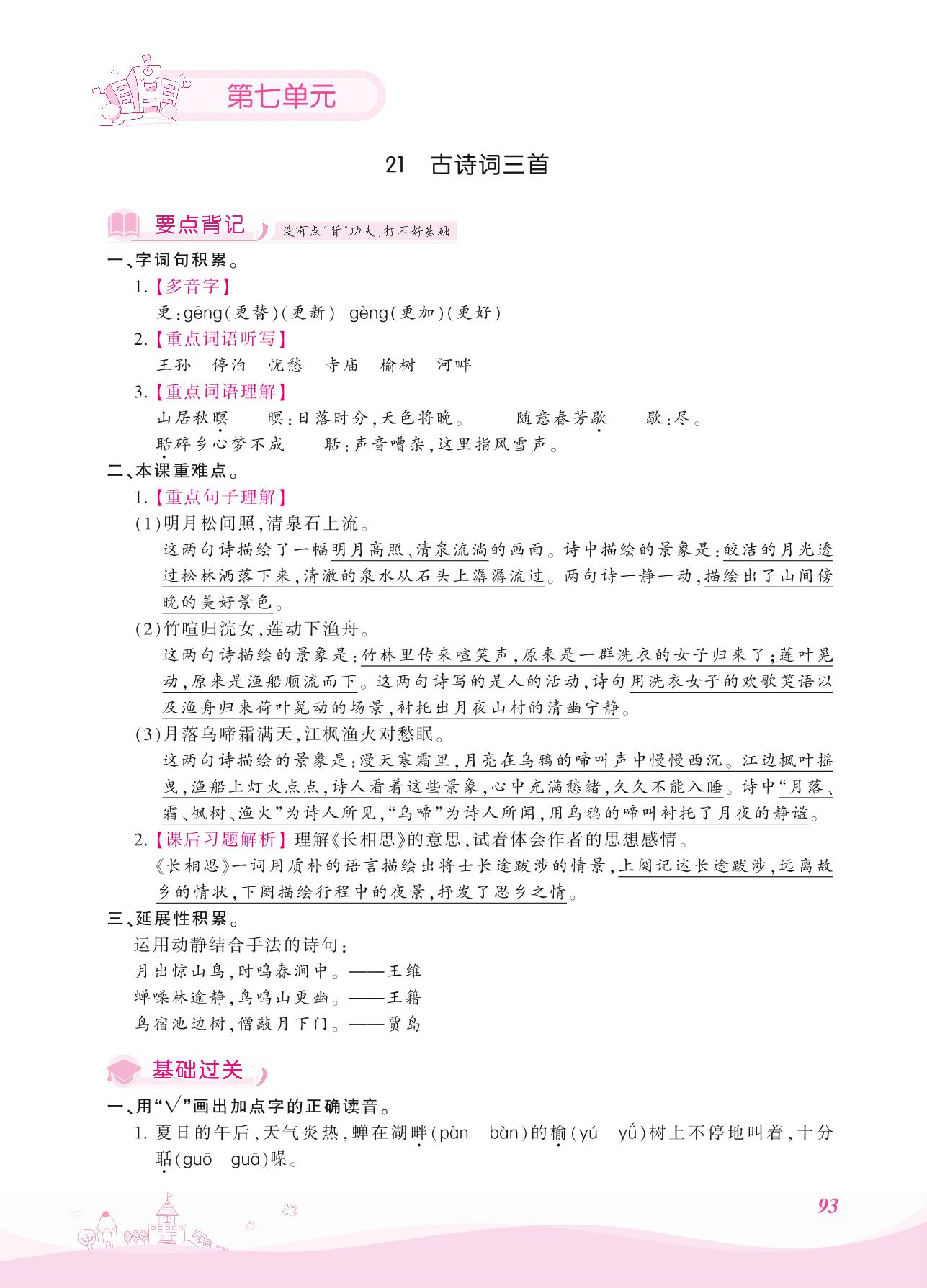 2021上册五年级语文人教版 第七单元——21 古诗词三首