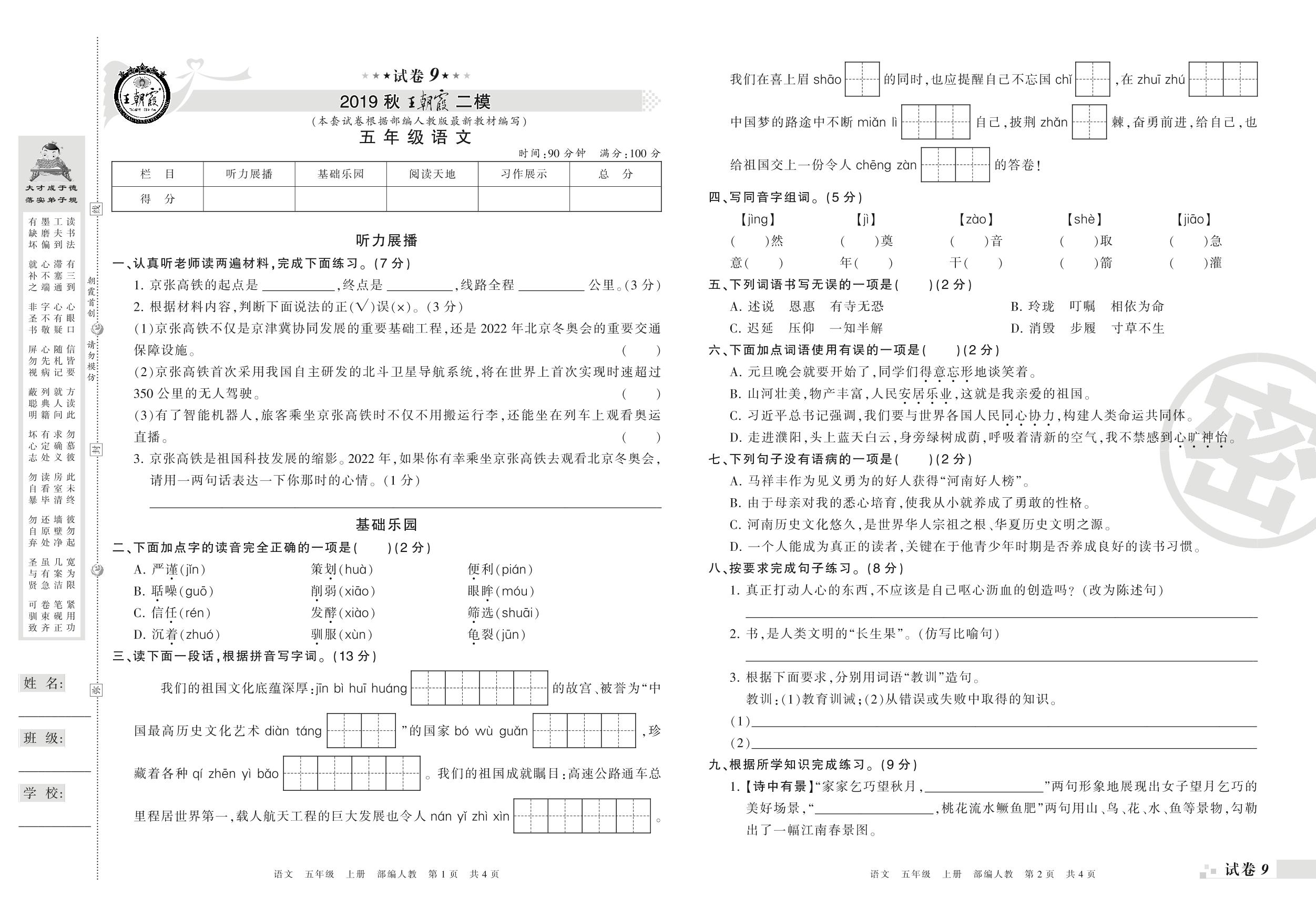 王朝霞期末模拟卷五年级上册语文(人教版)_R210801201218【9】