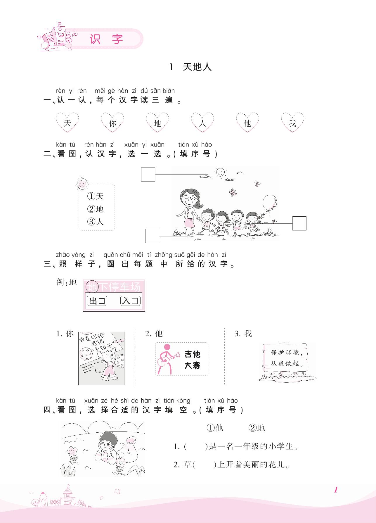 2021上册一年级语文人教版 第一单元 识字——1 天地人