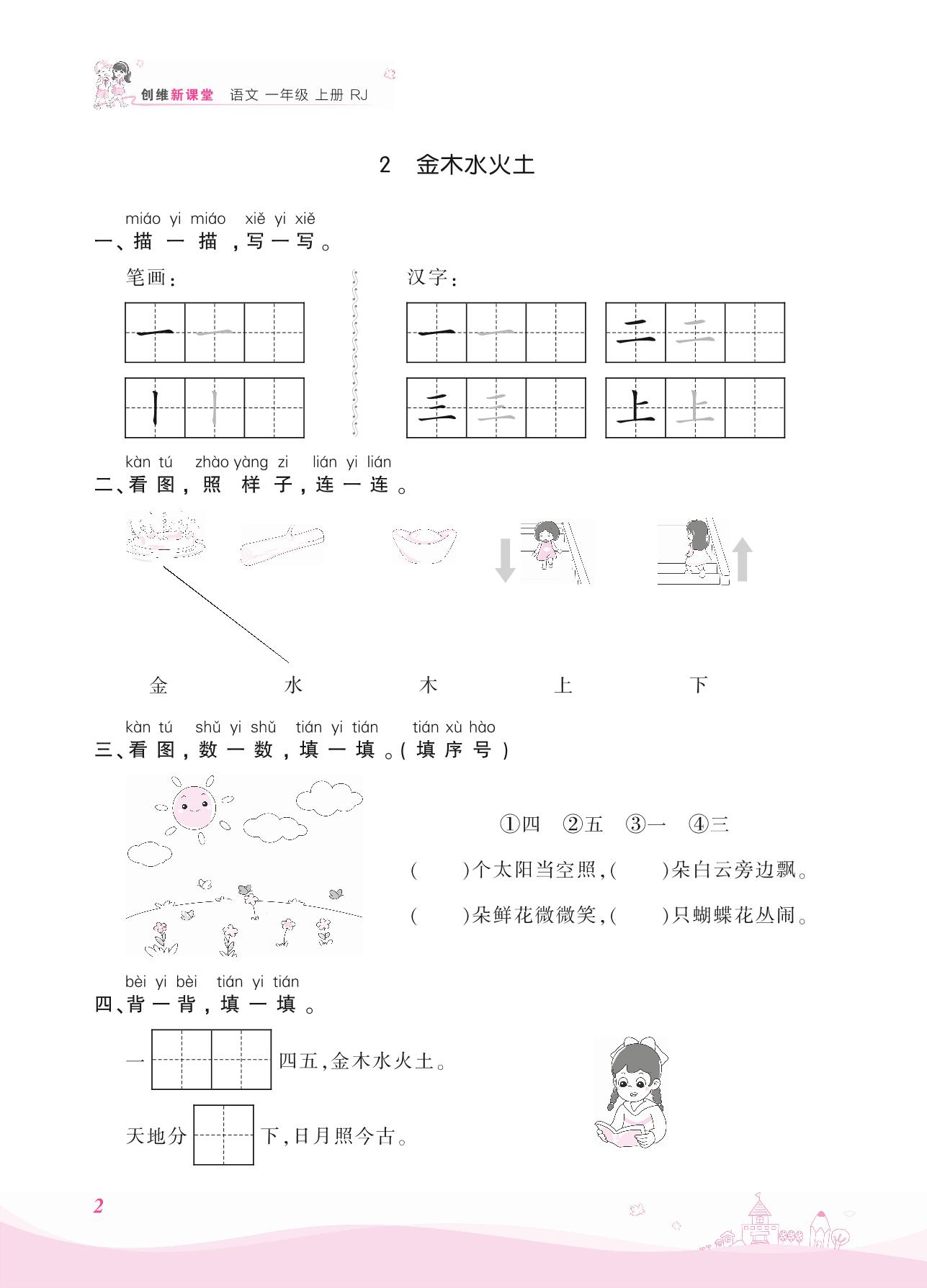 2021上册一年级语文人教版 第一单元 识字——2 金木水火土