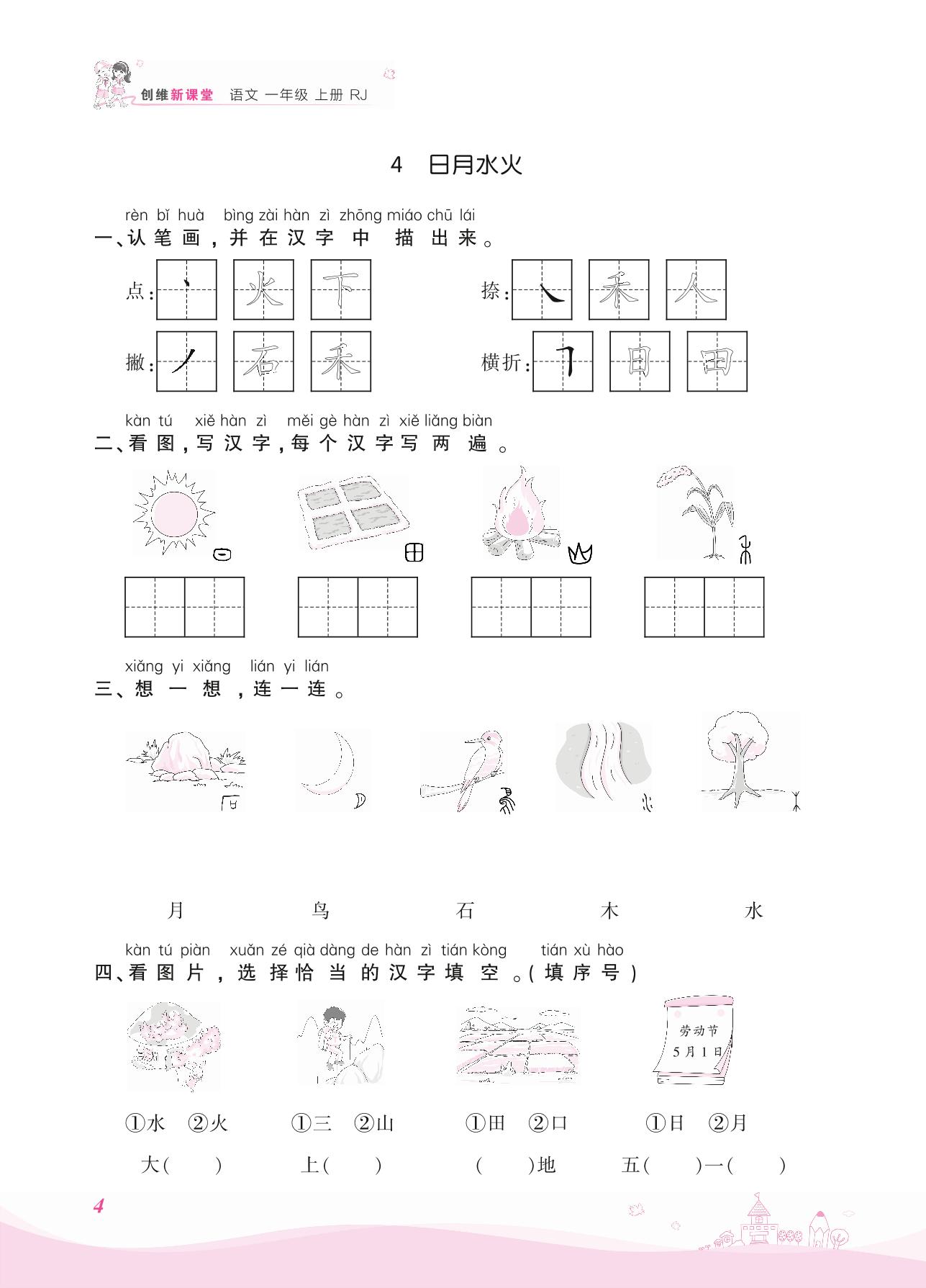 2021上册一年级语文人教版 第一单元 识字——4 日月水火
