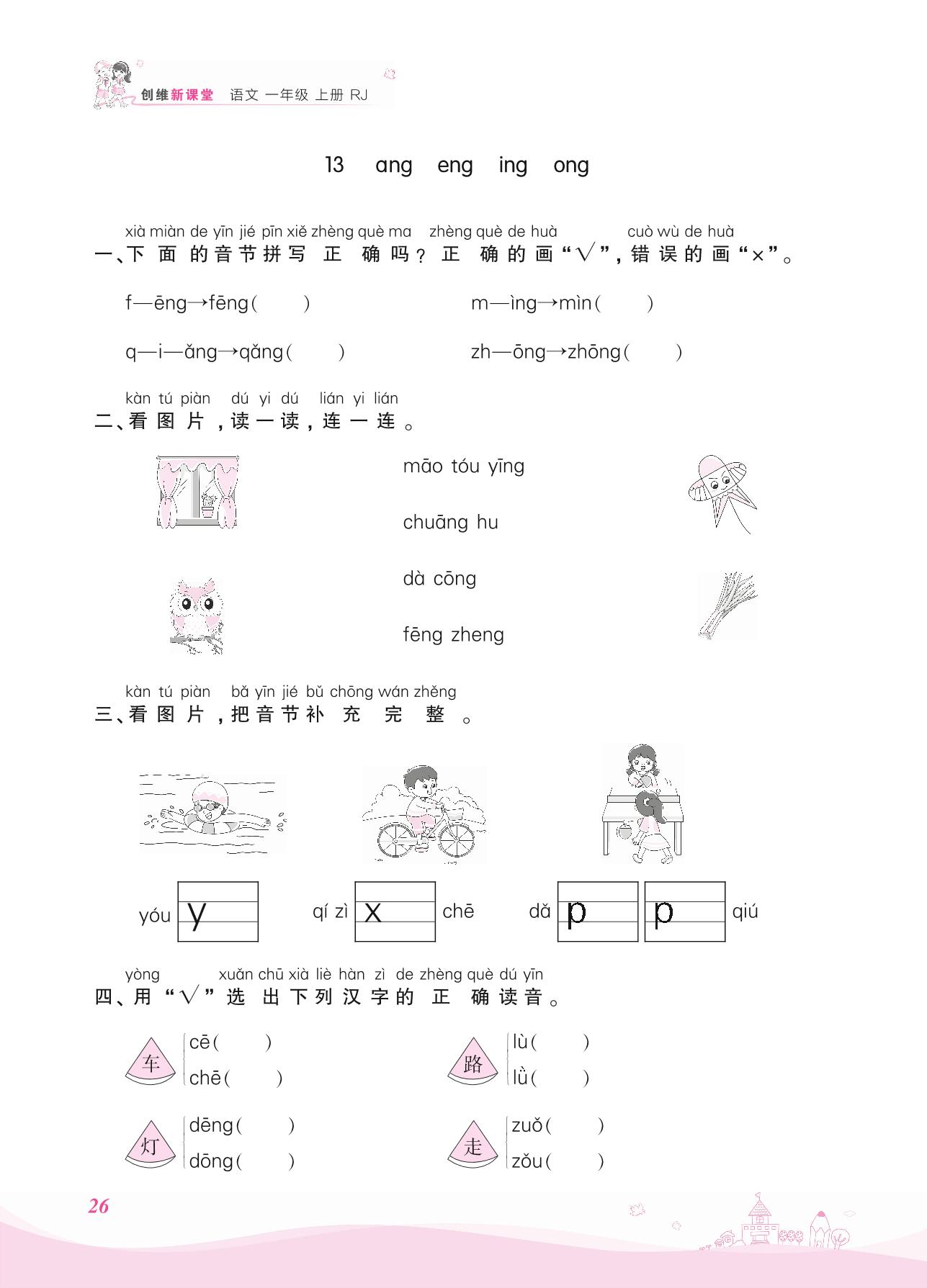 2021上册一年级语文人教版 第三单元 汉语拼音——13 ɑng eng ing ong