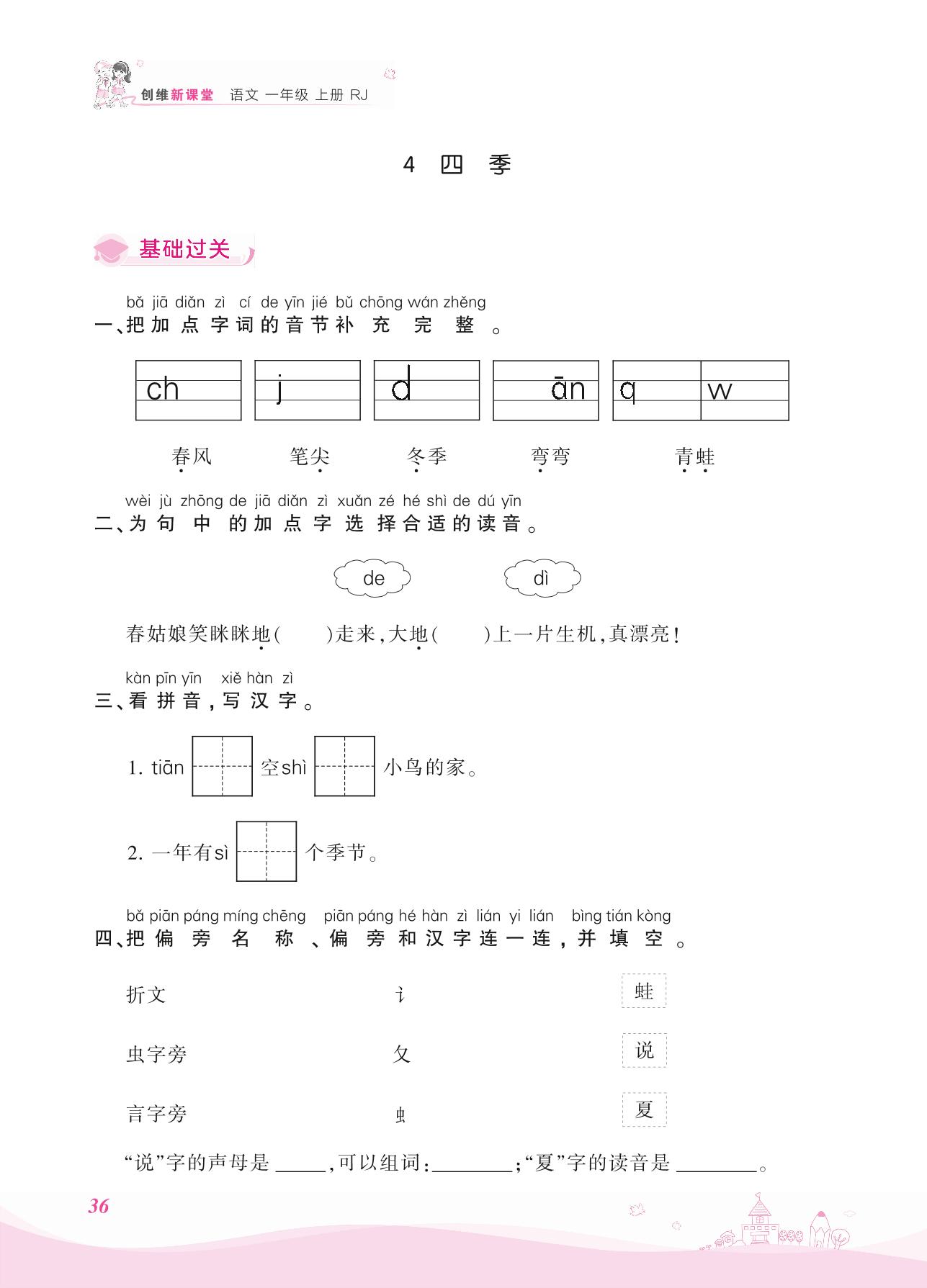 2021上册一年级语文人教版 第四单元 课文——4 四季