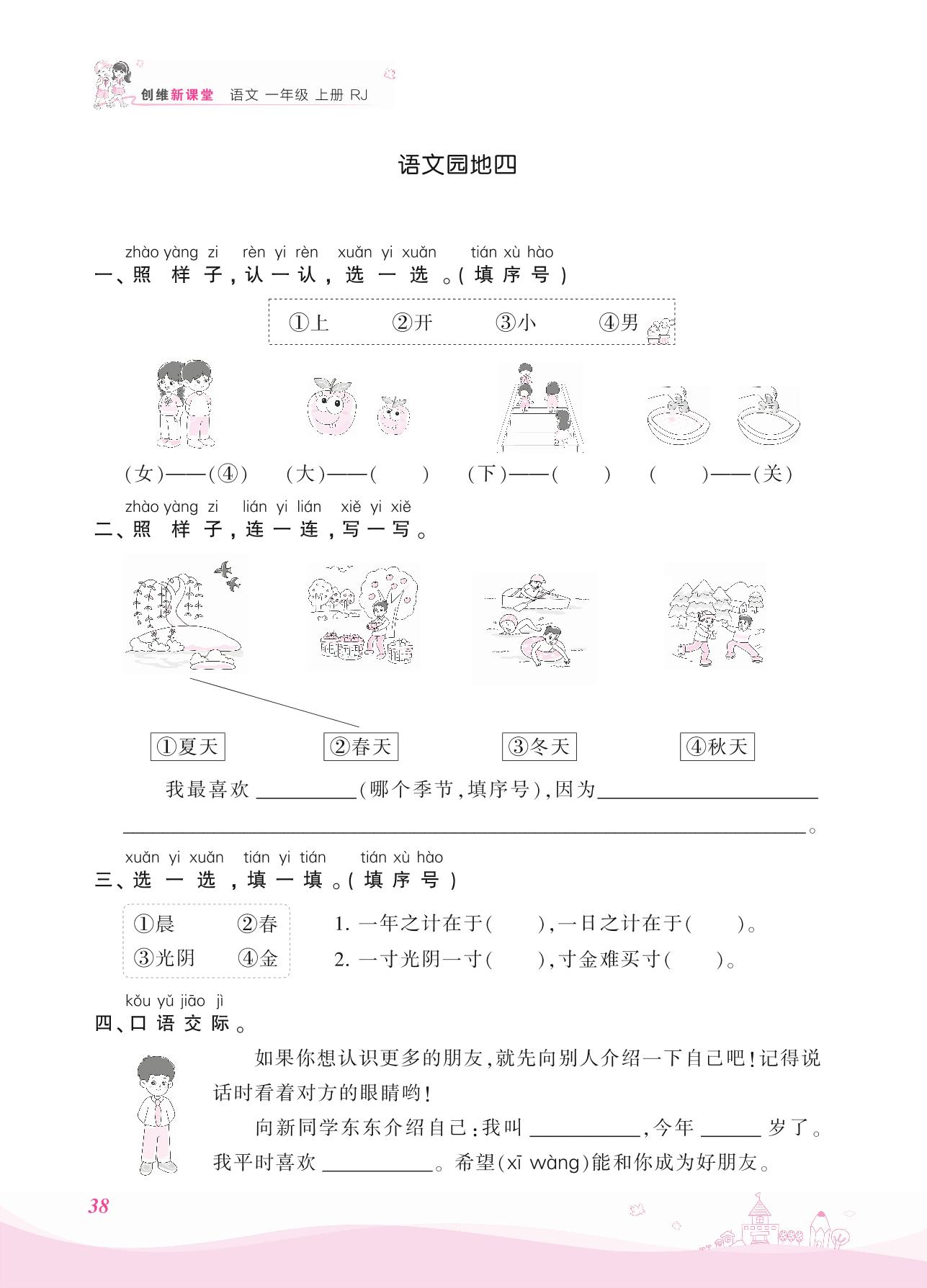 2021上册一年级语文人教版 第四单元 课文——语文园地四