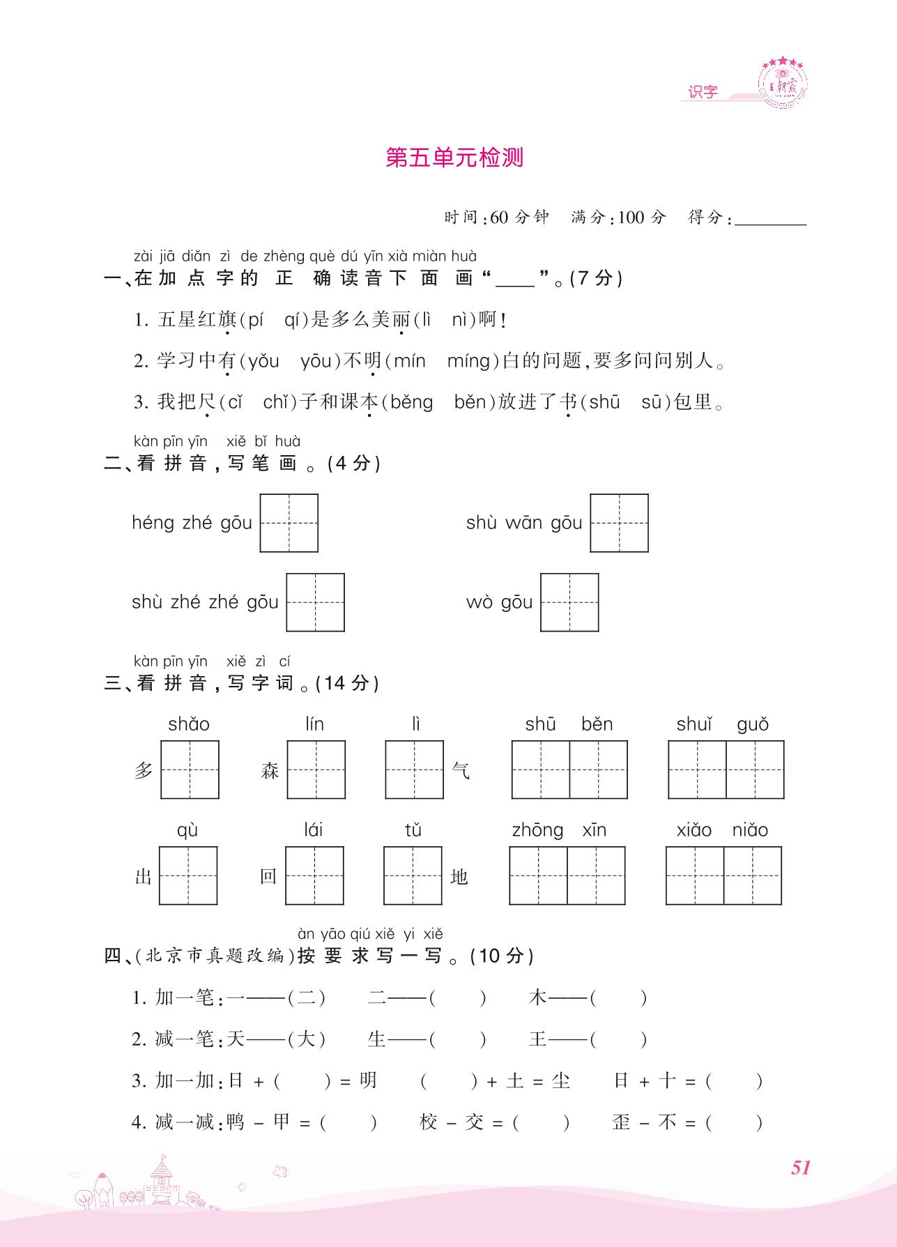 一年级语文人教版上册单元卷