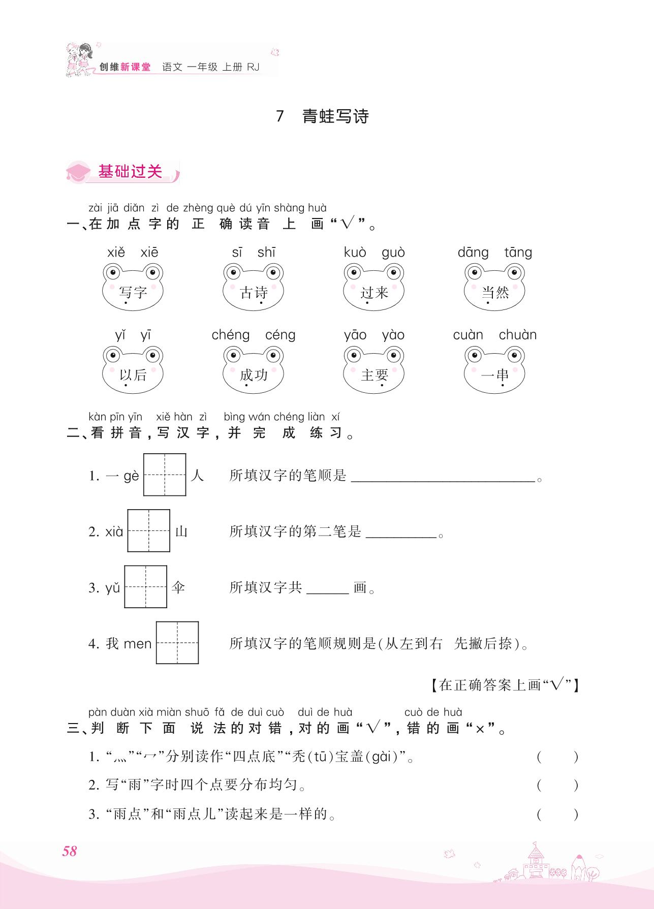 2021上册一年级语文人教版 第六单元 课文——7 青蛙写诗