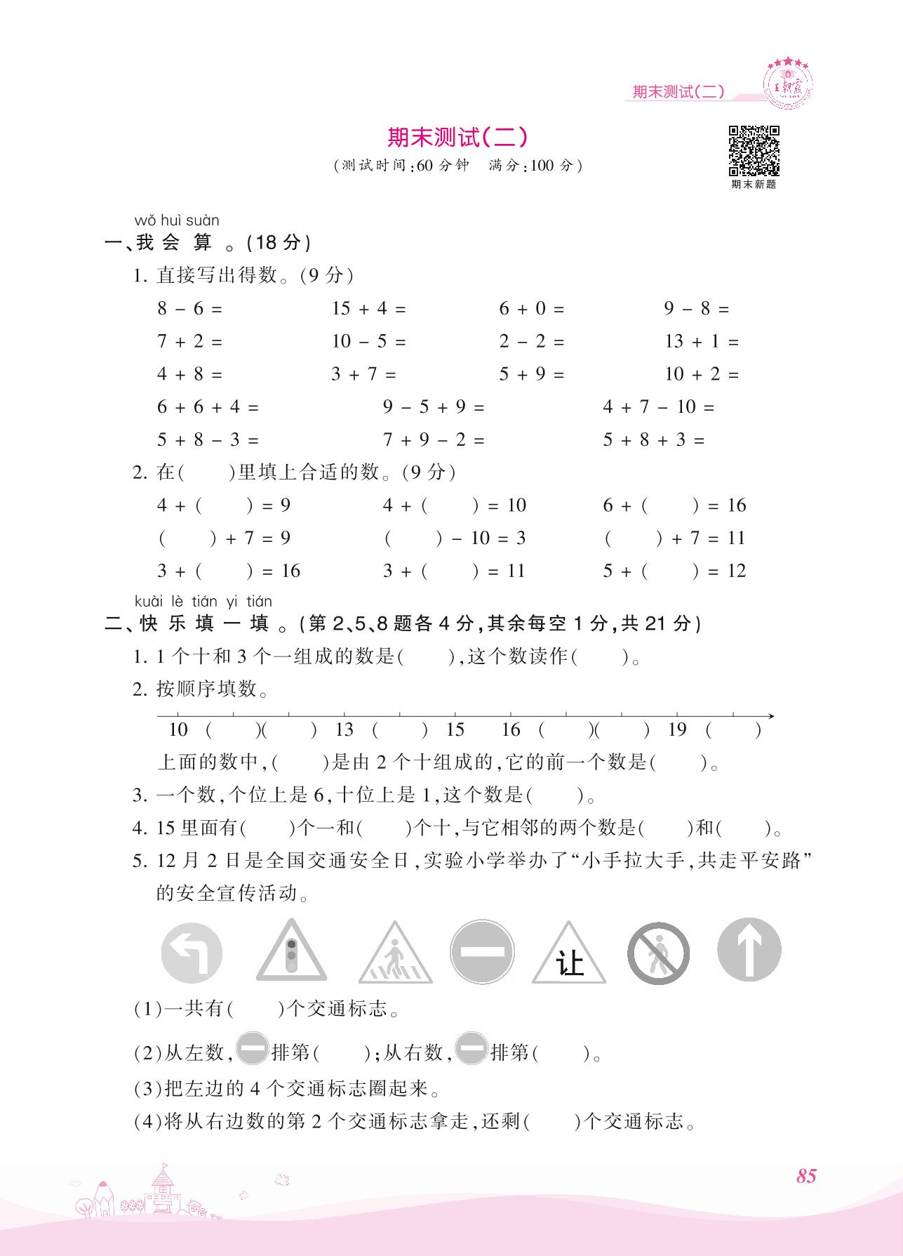 2021上册一年级数学人教版 期末测试(二)
