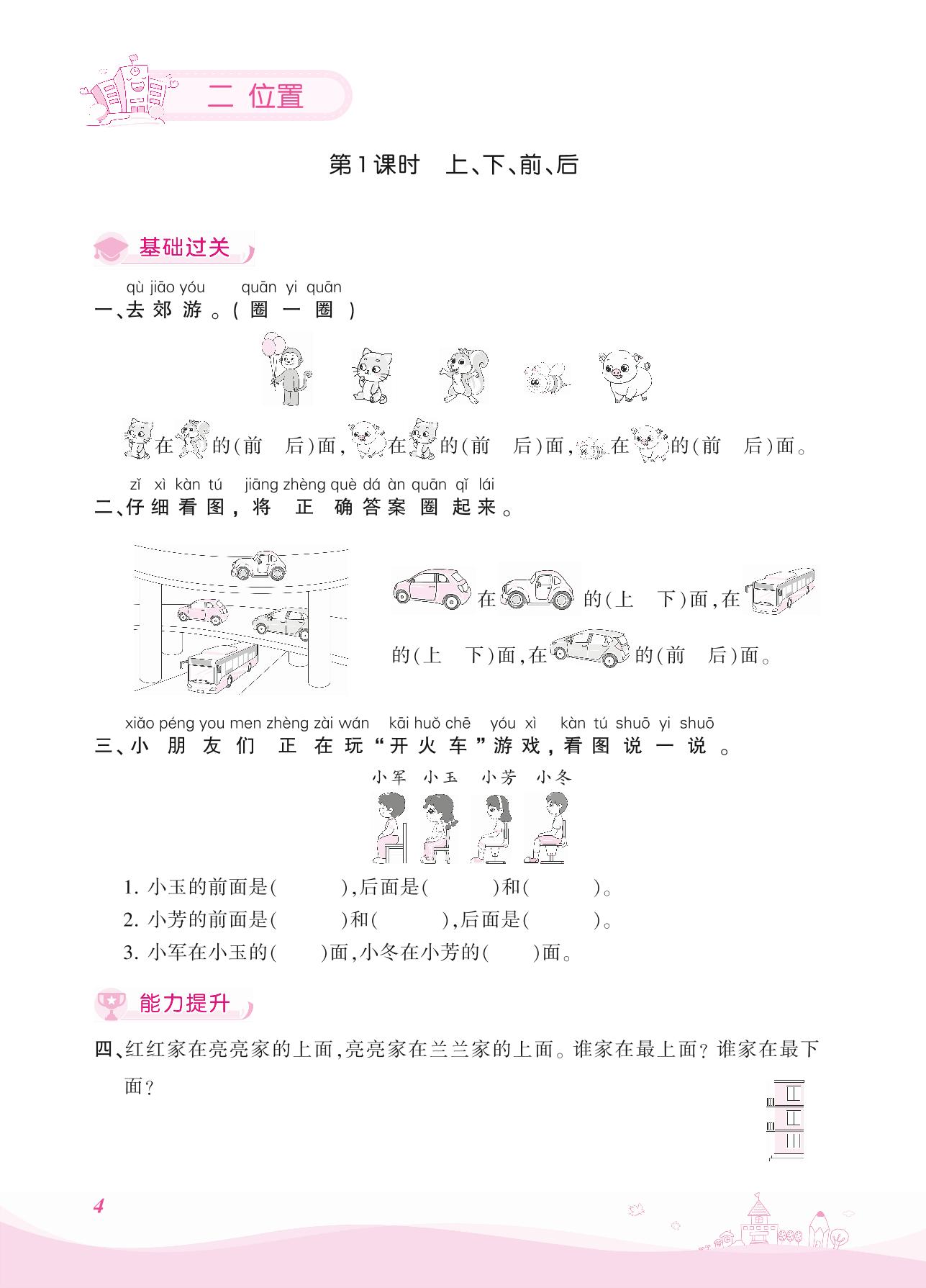2021上册一年级数学人教版 二 位置——第1课时 上、下、前、后