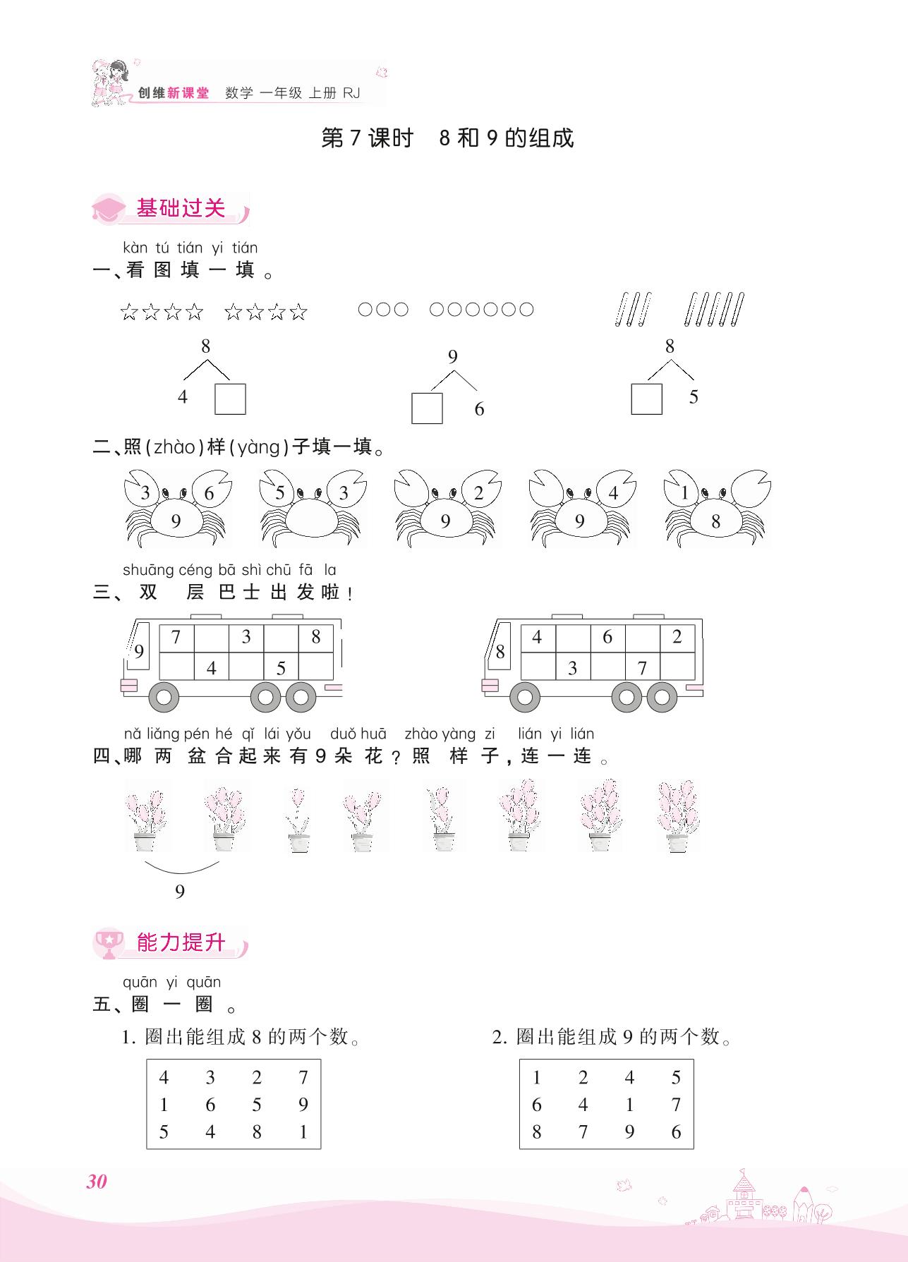 2021上册一年级数学人教版 五 6~10的认识和加减法——第7课时 8和9的组成