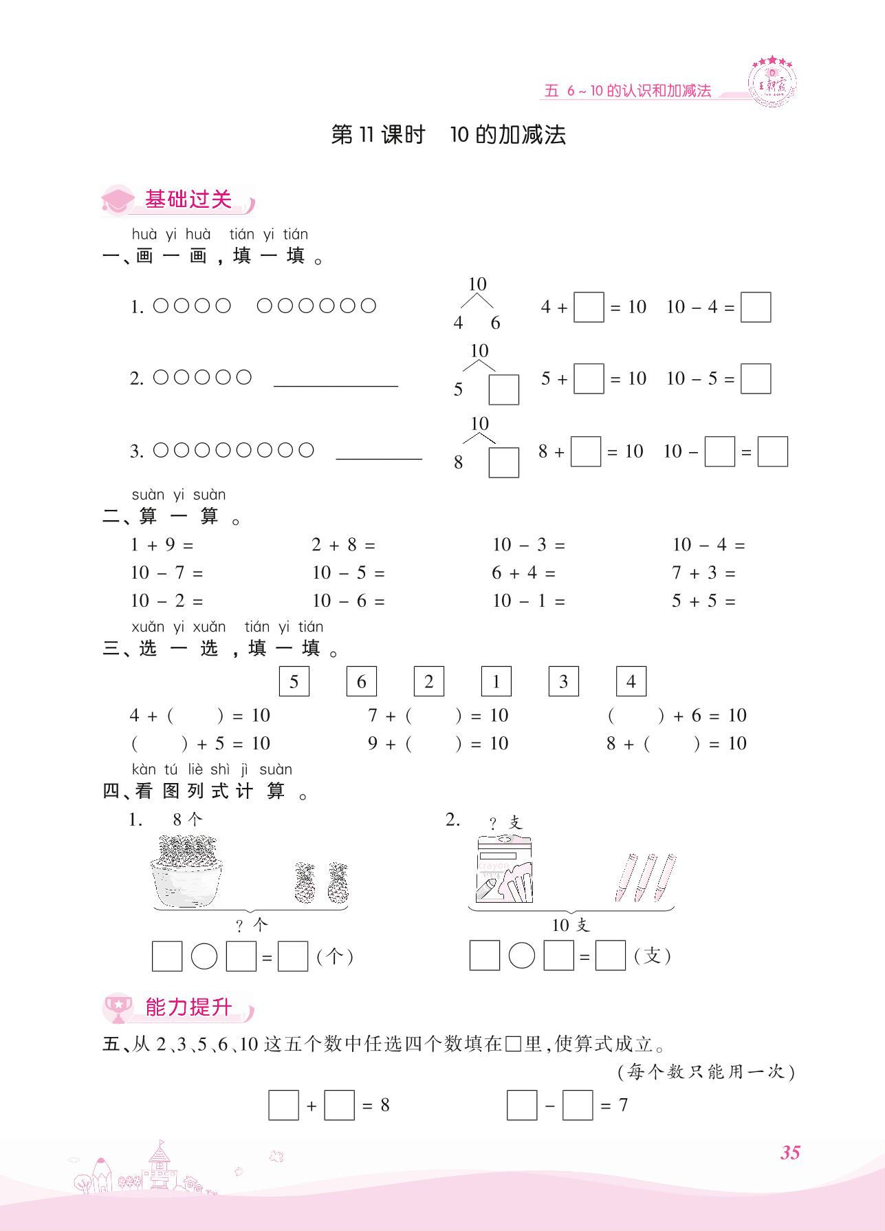 2021上册一年级数学人教版 五 6~10的认识和加减法——第11课时 10的加减法