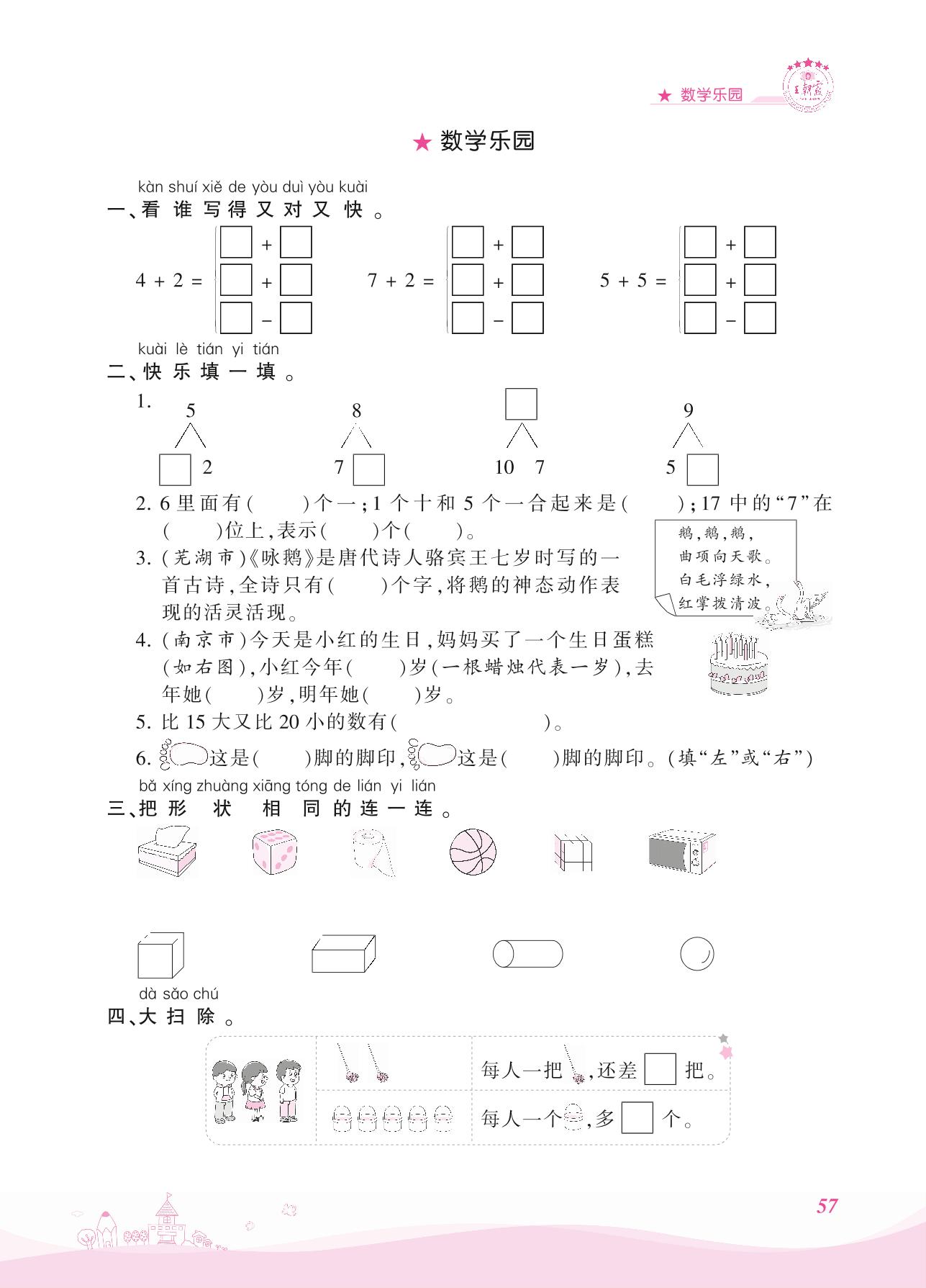 2021上册一年级数学人教版 六 11~20各数的认识——数学乐园