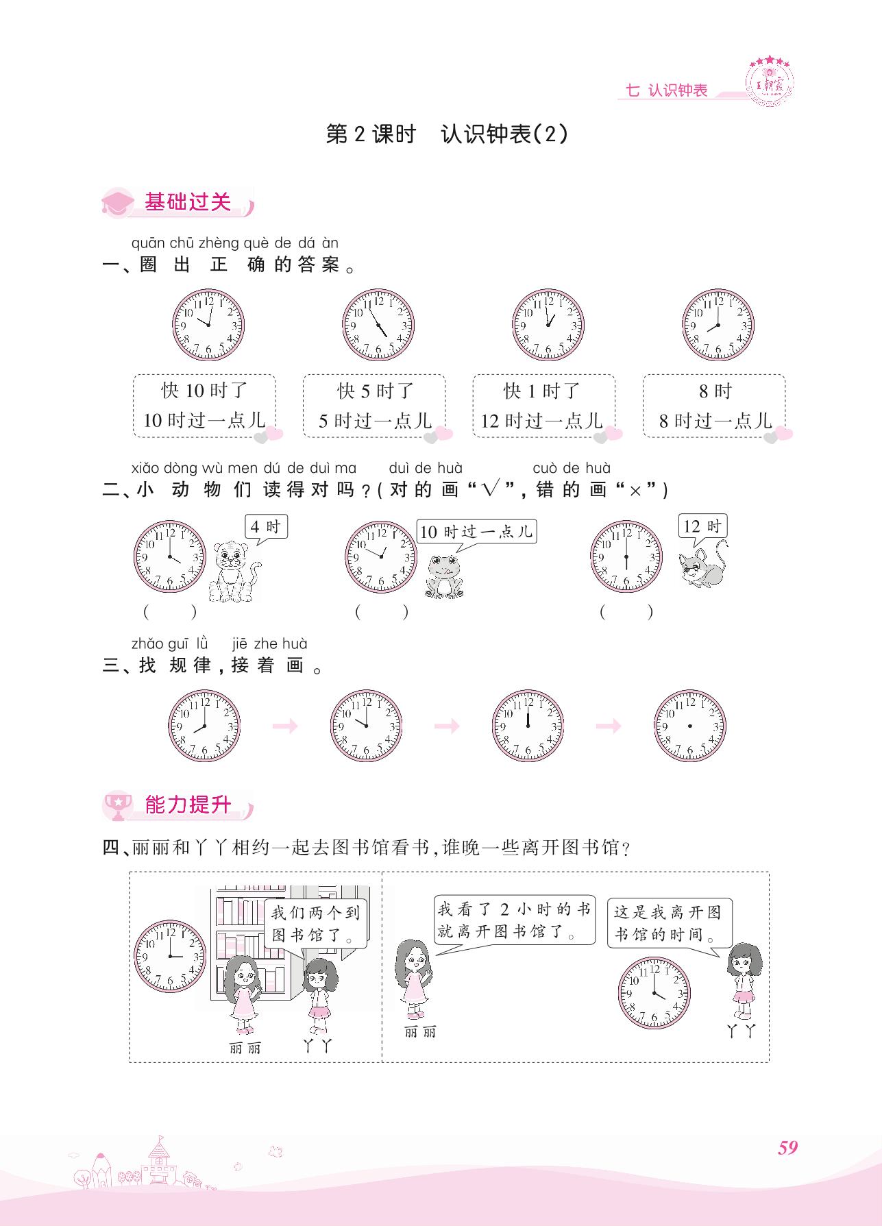2021上册一年级数学人教版 七 认识钟表——第2课时 认识钟表(2)