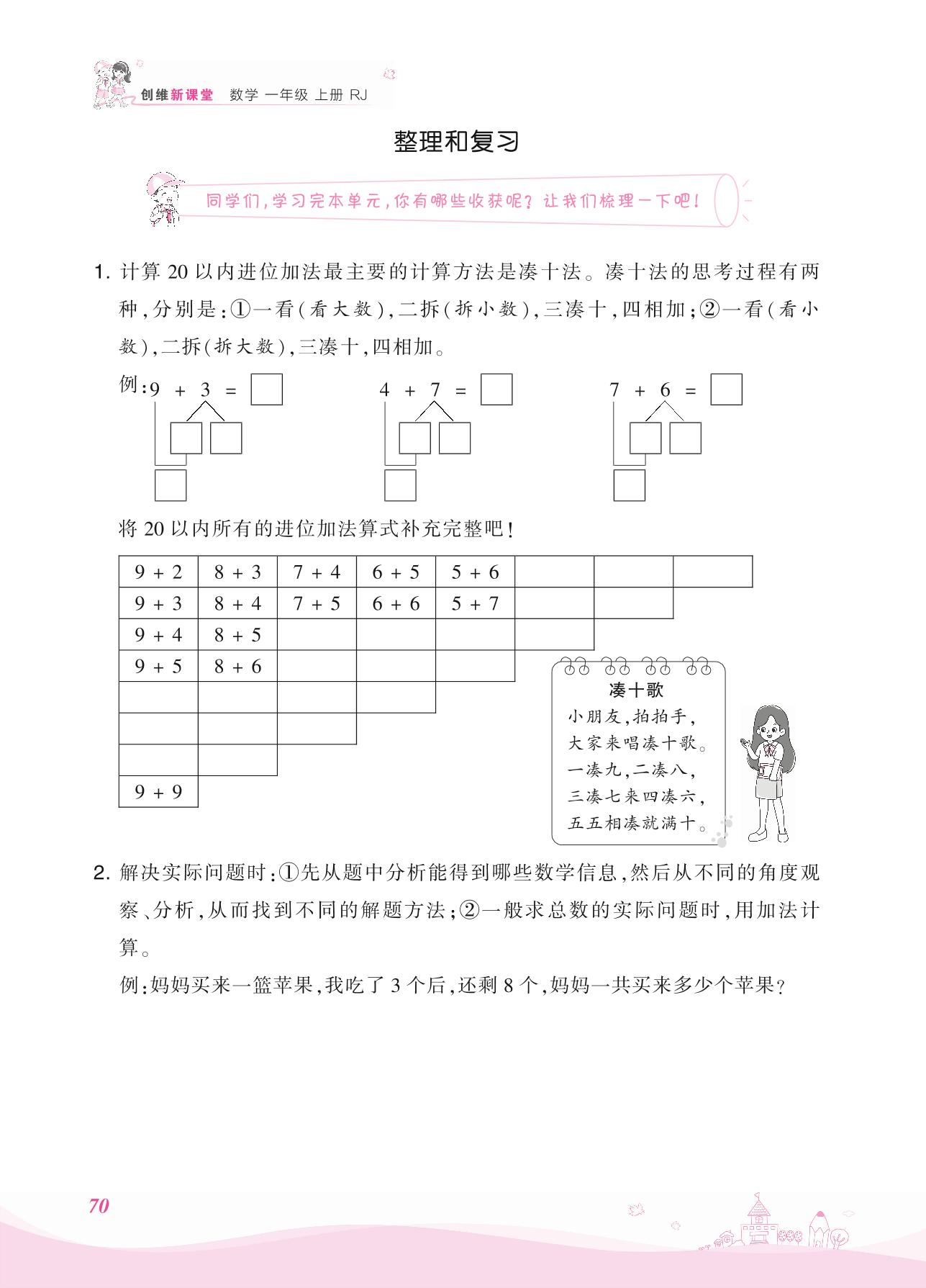 2021上册一年级数学人教版 八 20以内的进位加法——整理和复习