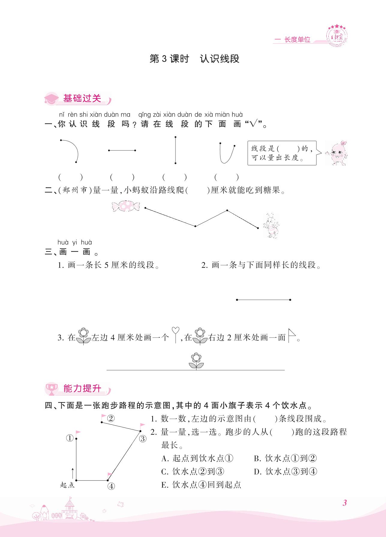 2021上册二年级数学人教版 一 长度单位——第3课时 认识线段