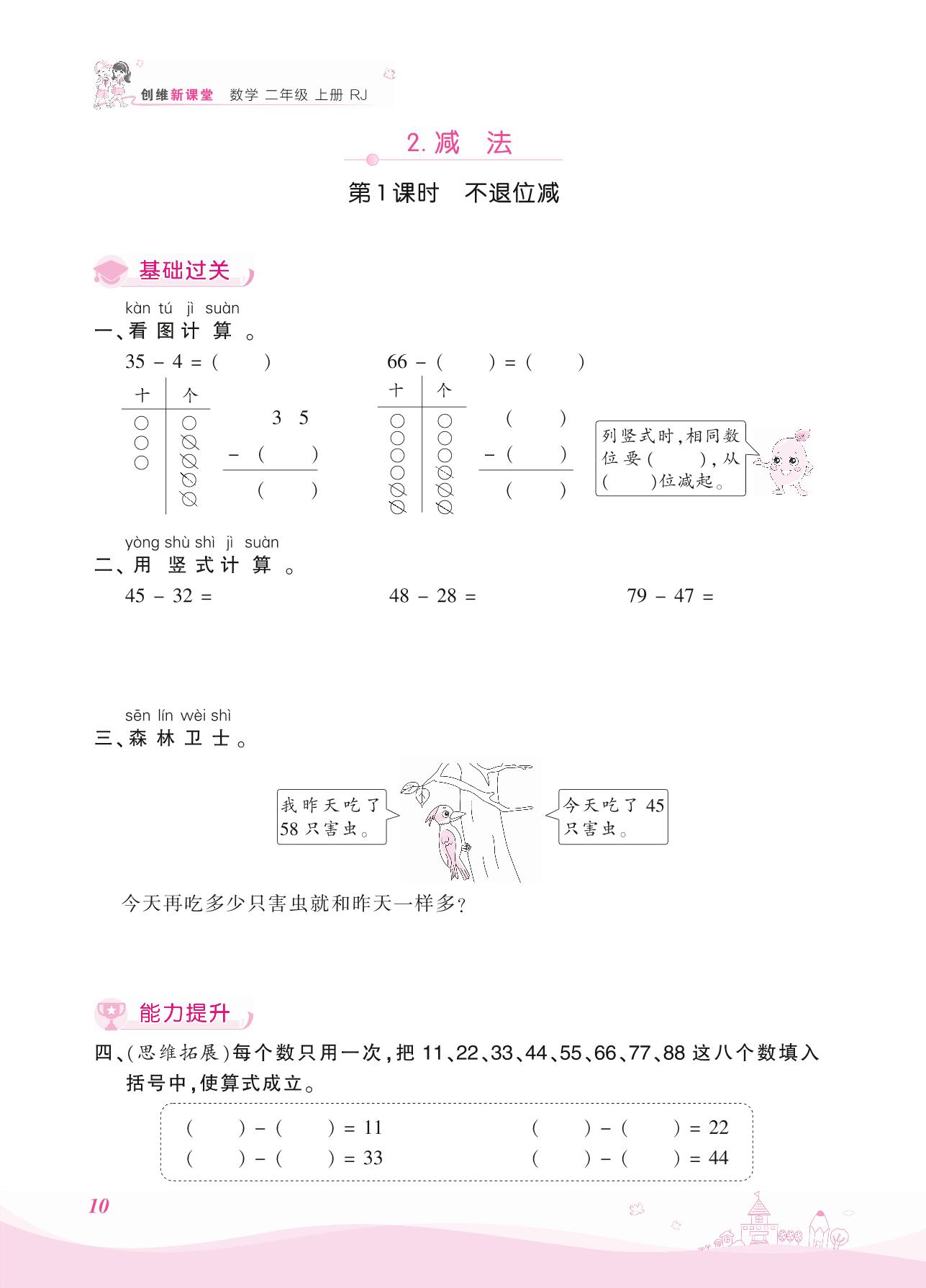 2021上册二年级数学人教版 二 100以内的加法和减法(二) 2. 减法——第1课时 不退位减