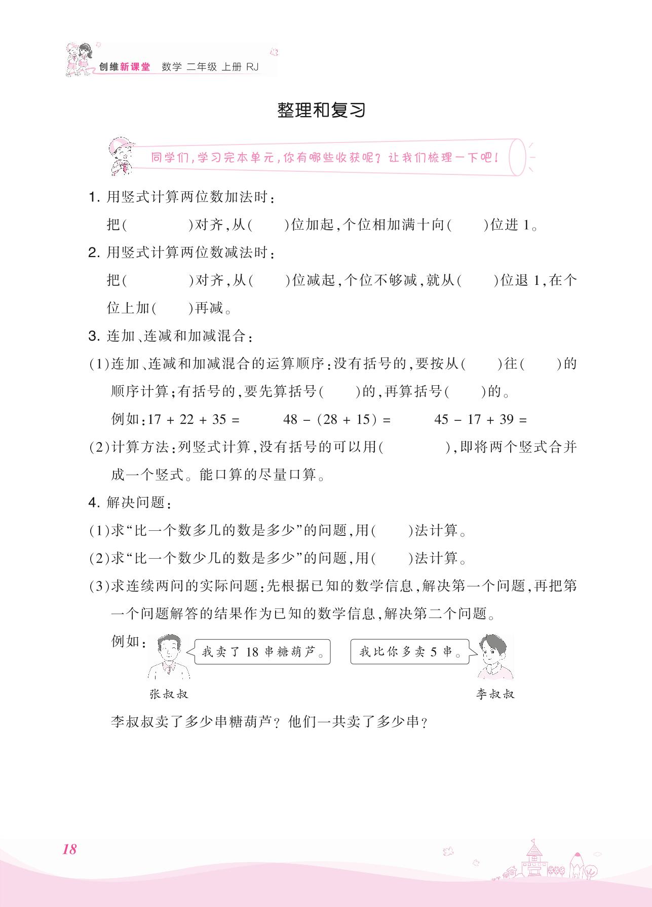 2021上册二年级数学人教版 二 100以内的加法和减法(二) 3. 连加、连减和加减混合——整理和复习