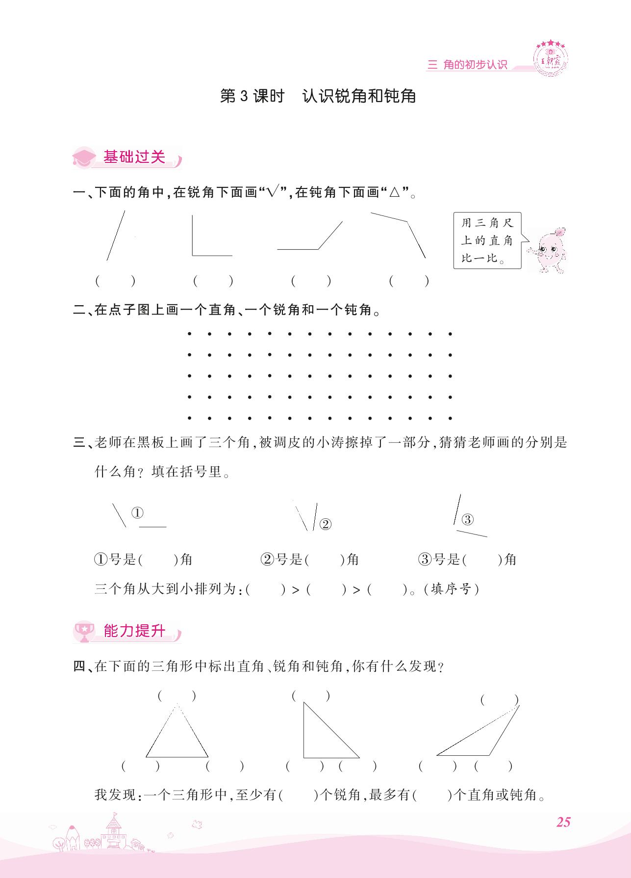 2021上册二年级数学人教版 三 角的初步认识——第3课时 认识锐角和钝角