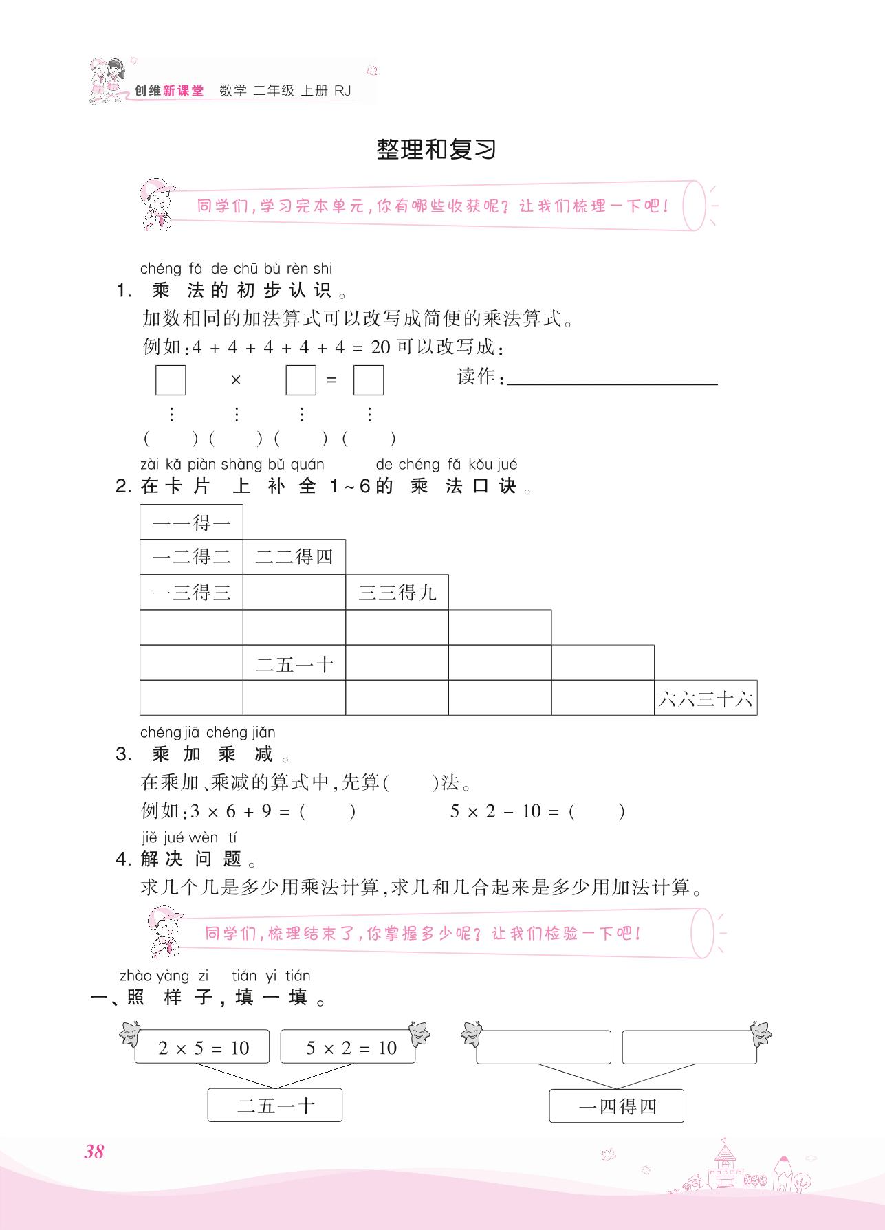 2021上册二年级数学人教版 四 表内乘法(一) 2. 2~6的乘法口诀——整理和复习