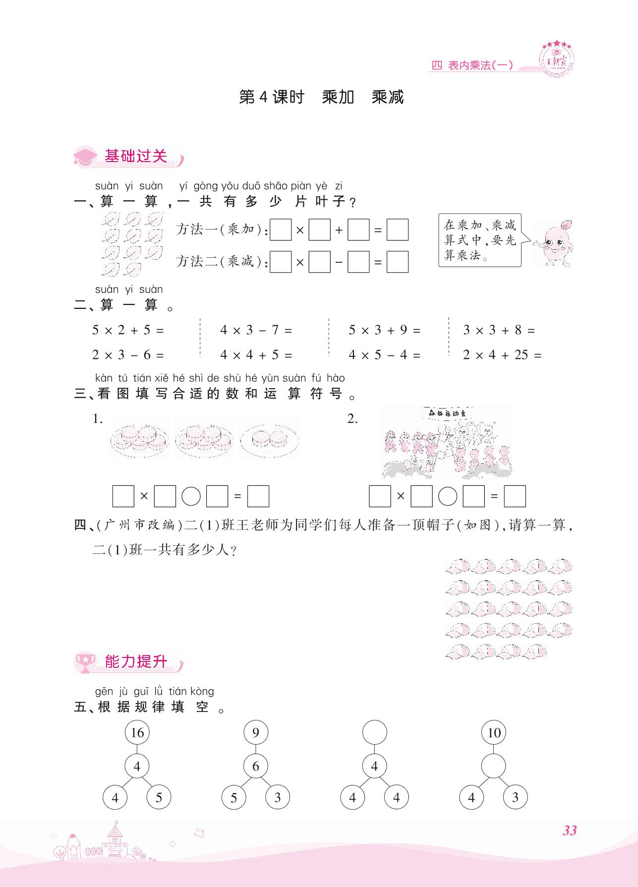 2021上册二年级数学人教版 四 表内乘法(一) 2. 2~6的乘法口诀——第4课时 乘加 乘减