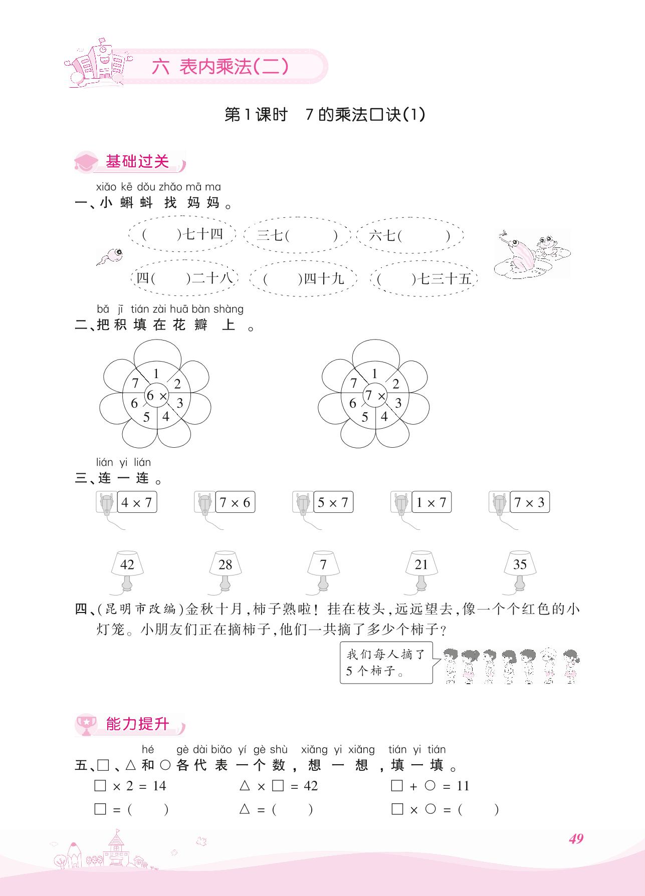 2021上册二年级数学人教版 六 表内乘法(二)——第1课时 7的乘法口诀(1)