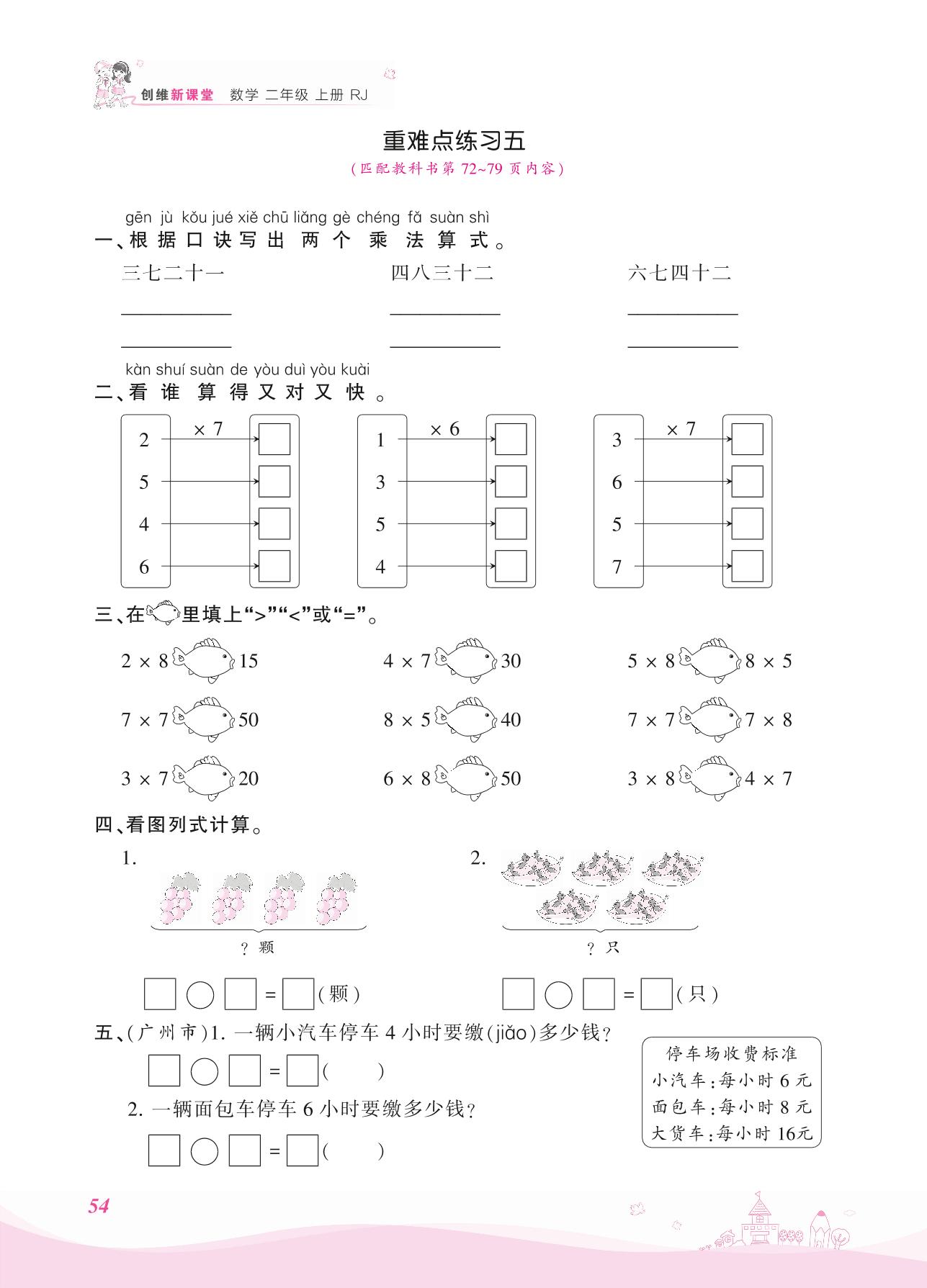 2021上册二年级数学人教版 六 表内乘法(二)——重难点练习五