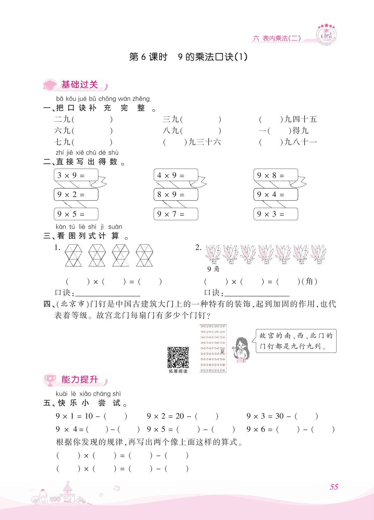 2021上册二年级数学人教版 六 表内乘法(二)——第6课时 9的乘法口诀(1)