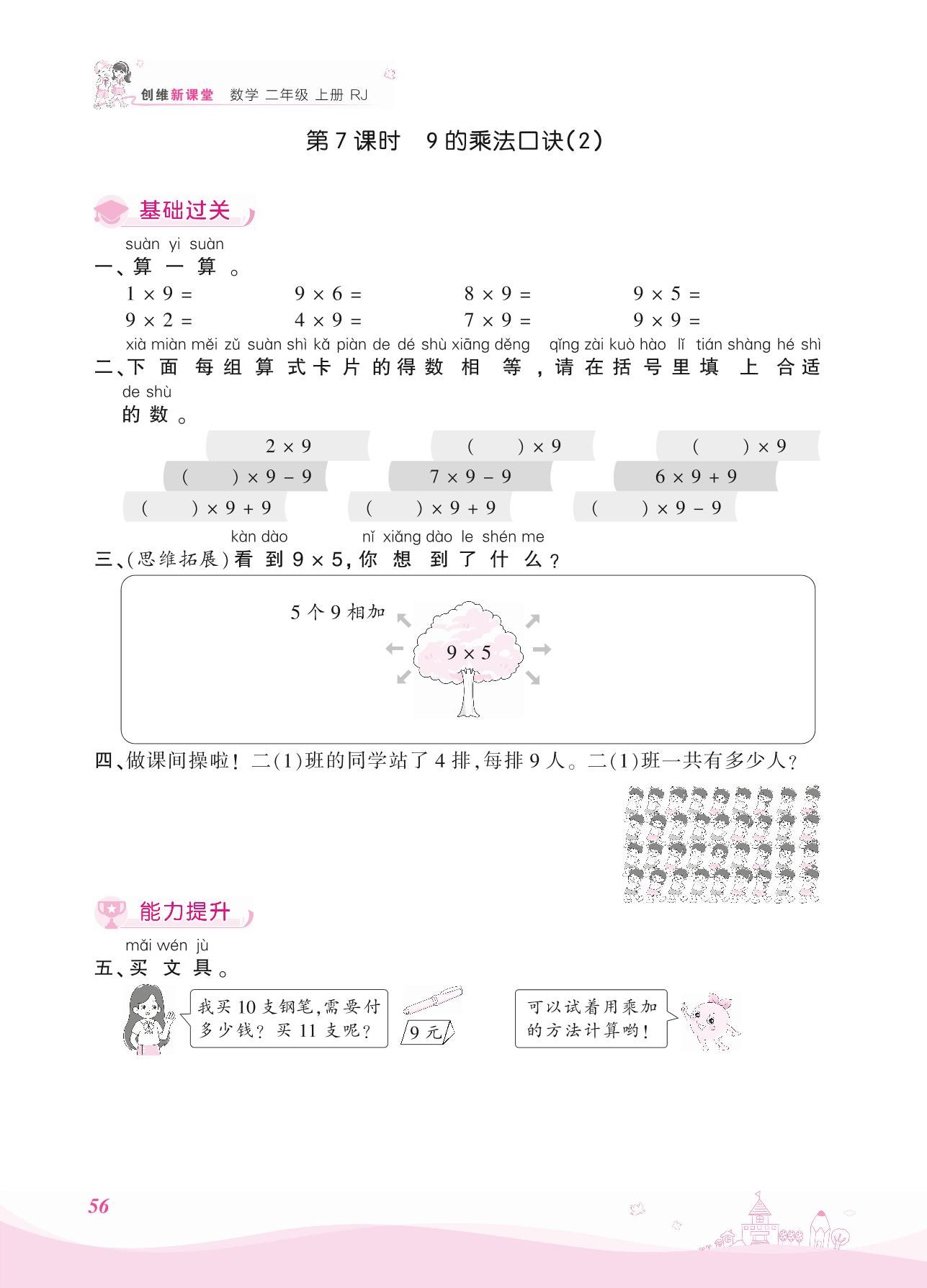 2021上册二年级数学人教版 六 表内乘法(二)——第7课时 9的乘法口诀(2)